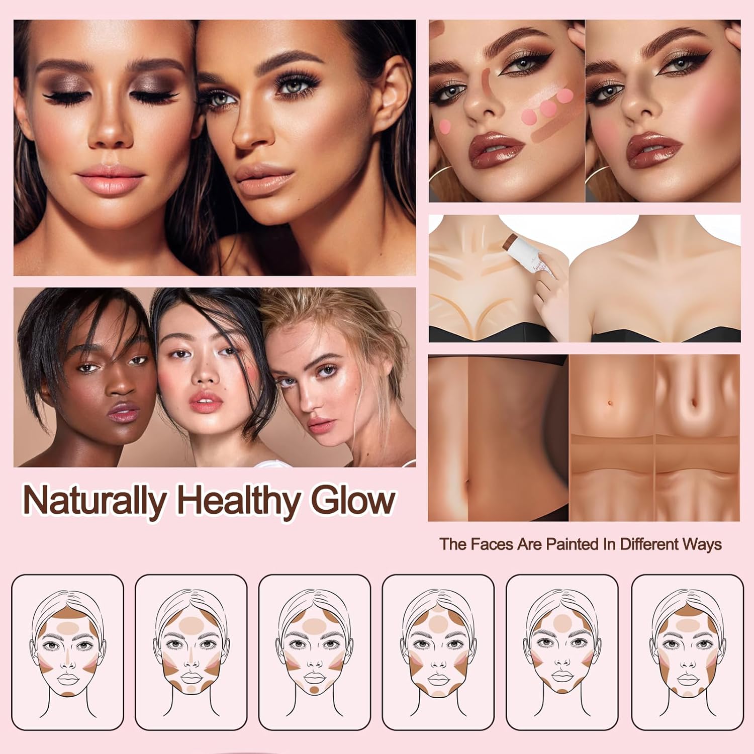 - 【Easy To Use】First apply foundation on the face, then use the blush, highlighter and bronze contour stick to gently slide on the forehead, cheeks, jawline or nose, and finally use the soft makeup brush on the other end to smooth it out to ensure a natural and perfect makeup.