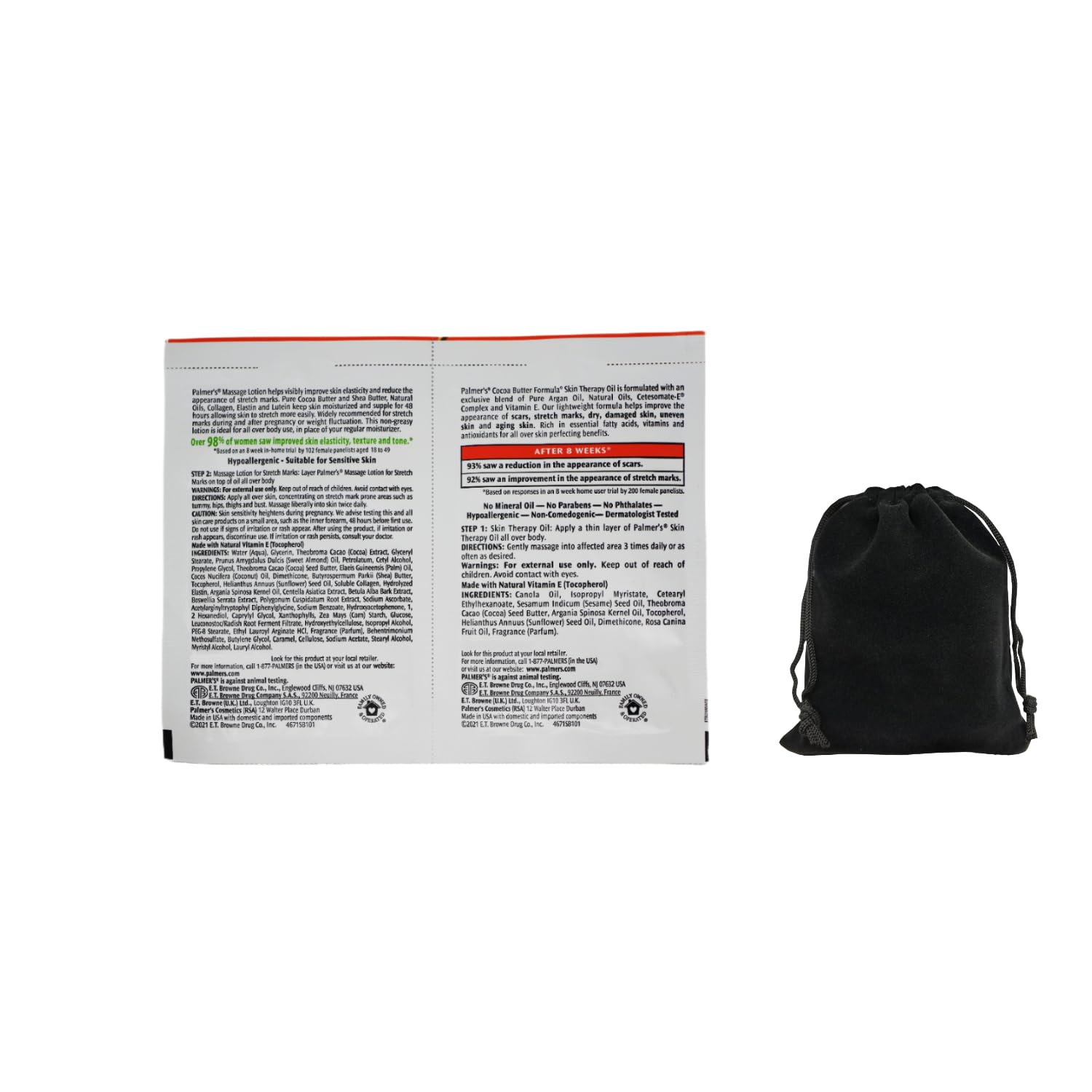 Palmer's Cocoa Butter Formula Skin Therapy Oil and Massage Lotion for Stretch Marks, Travel Pack, 0.68 FL OZ, Intensive Hydration, Skin Elasticity, Pregnancy Safe, Paraben-Free, 10 CT, W/Travel Pouch