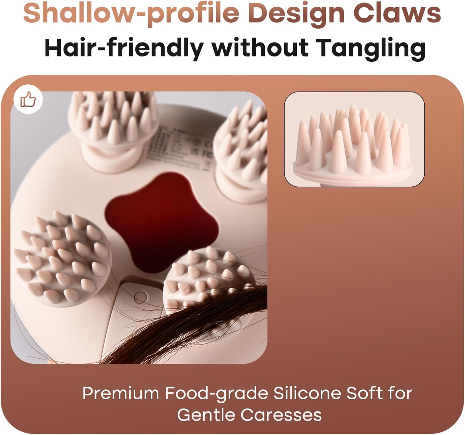 - Tangle-Free & Silicone Massage Claws: Hair massager features 8 silicone massage heads with a total of 128 nodes, The No-tangling conical massage head design ensures precise targeting, allowing you to pinpoint specific areas for optimal massage results. Enjoy customized relaxation, reduce fatigue, and experience profound comfort with soft and stable massage heads. Lovely Cat Massager.