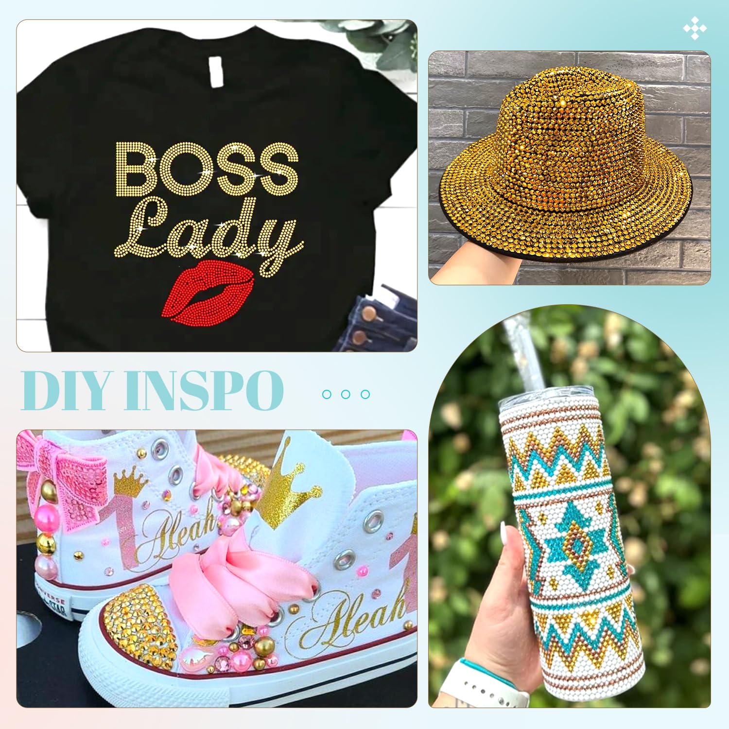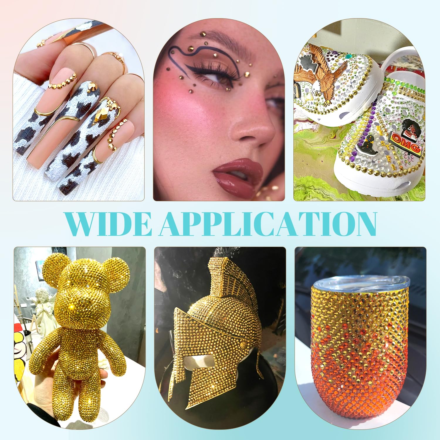- 💎WIDE APPLICATION -- These sparkling iridescent resin crystals are perfect for creating dazzling looks. Use them for bedazzling DIY crafts like shoes, tumblers, mugs, bottles, phone cases, popsockets, scrapbooks, photo frames, diamond paintings, greeting cards, bags, glasses, guitars, keychains, hats, masks, hair clips, bracelets, wristbands, clothing, wedding dresses, and more. Apply it to what you want to bling!