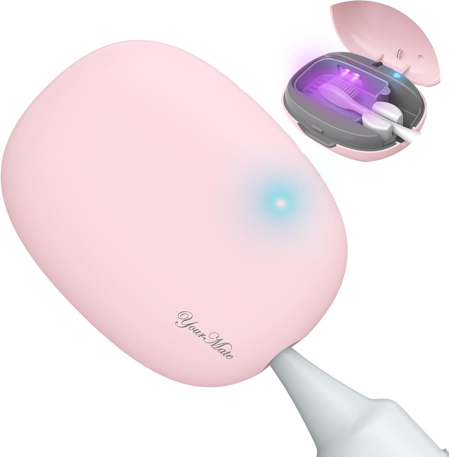 YourMate UVC Rechargerable Toothbrush Sanitizer Case Travel Toothbrush Covers Case with Holder for Houshold and Traveling or Business Trip Pink