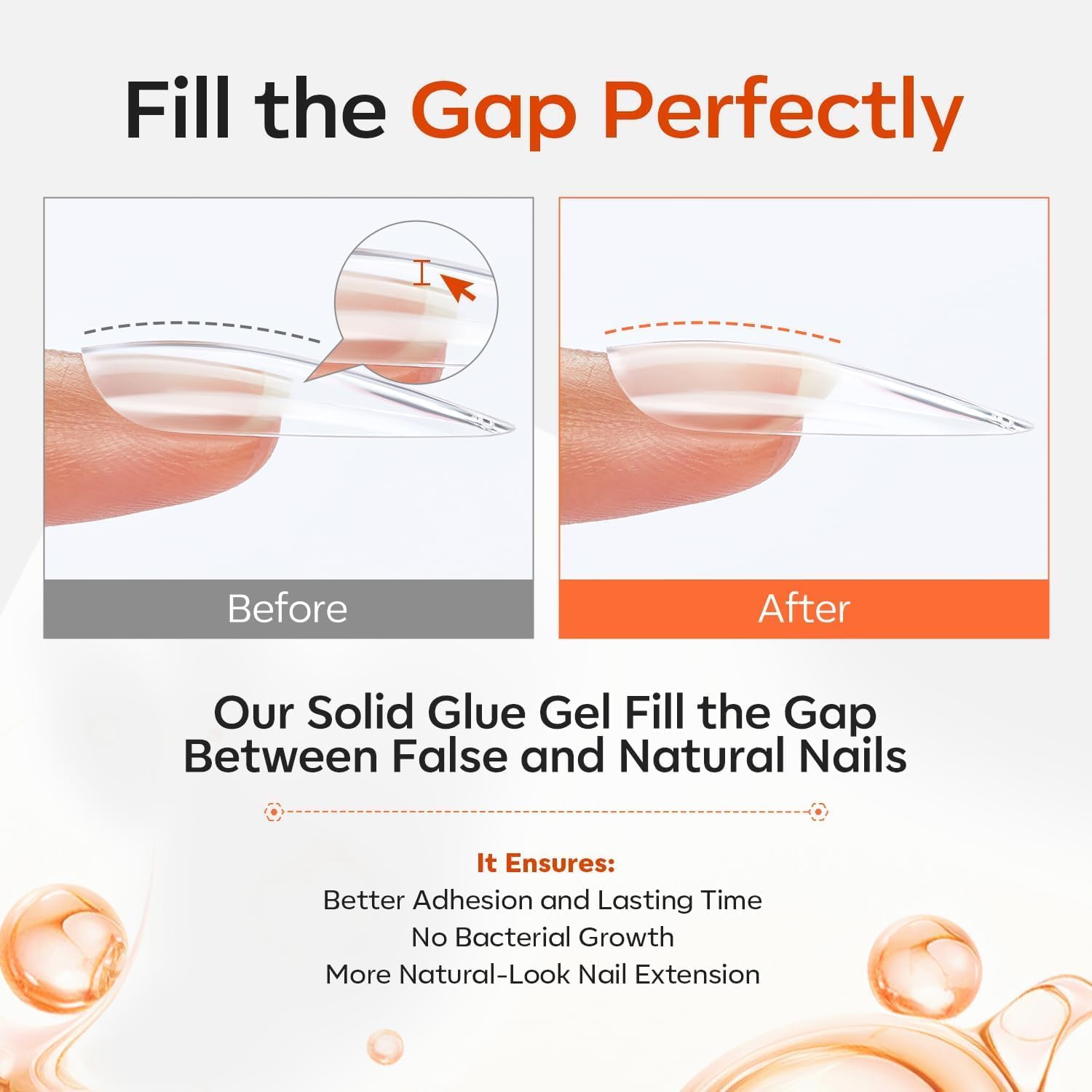 modelones Solid Nail Glue Gel, 30g Glue Gel on Nails for Clear Tips Super Strong Adhesive for Acrylic Extensions Press On Fake Tips U V Curing Needed Professional Adhesive