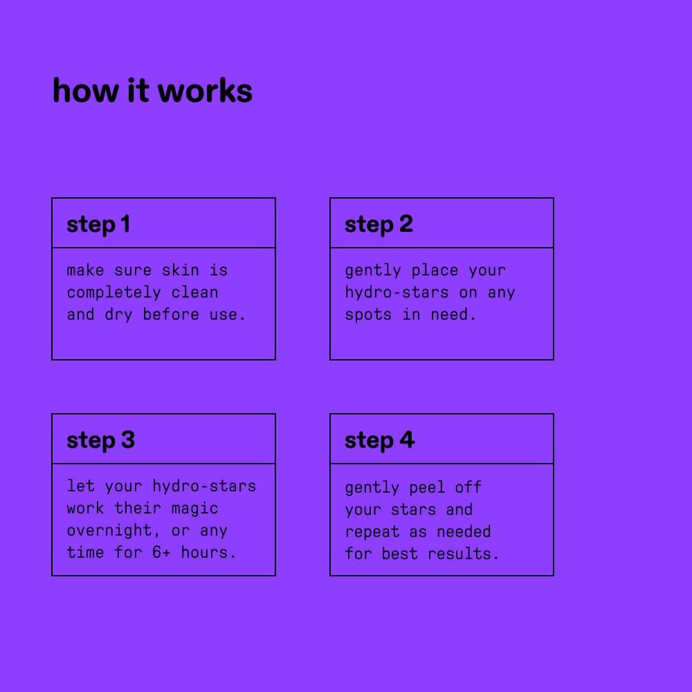 - EASY TO USE: Always apply to clean, dry skin (after cleansing and before moisturizing). Replace with a new star in the morning, or after 6+ hours, and repeat as needed for best results.