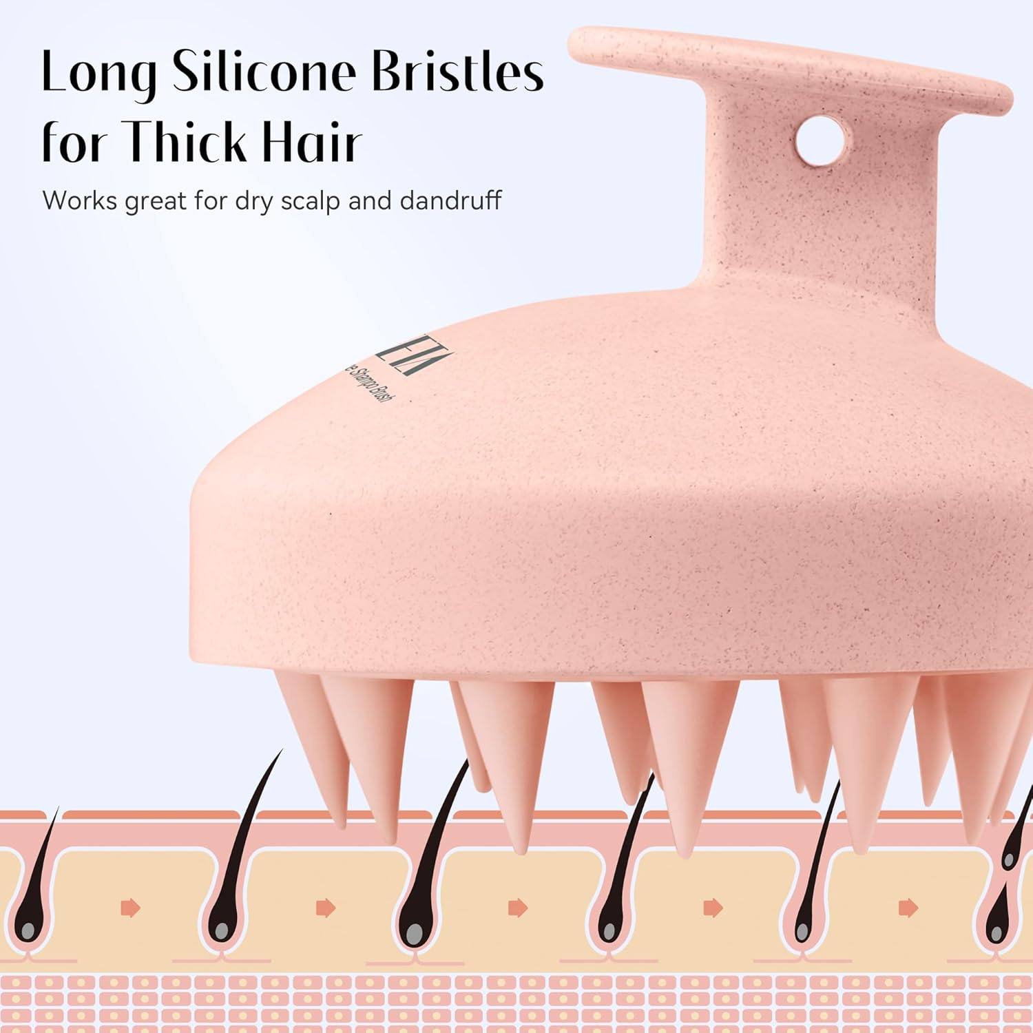HEETA Scalp Scrubber Shampoo Brush, Scalp Massager Tool for Hair Growth, Soft Silicone Bristles for Dandruff Removal Wet Dry Use Women Men Kids Pet, Fit All Hair Types Care, Pink