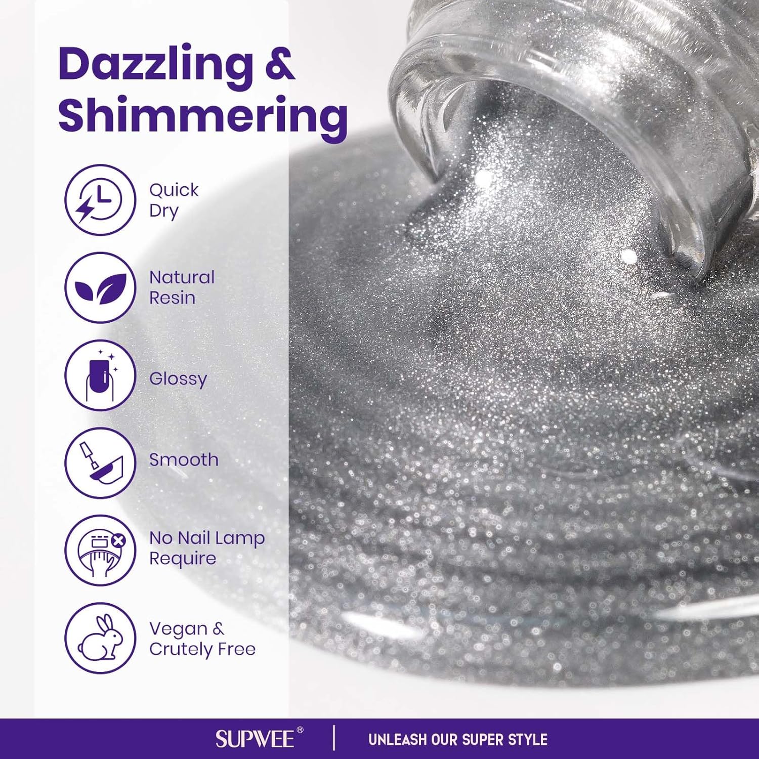 - Quick Dry Cat Eye Effect: Get your glam on with our high capacity 16ml(0.54fl oz) Shimmer Silver Cat Eye Nail Polish and Wide Magnetic Stick, perfect for creating various stunning cat-eye designs to elevate your nail art
