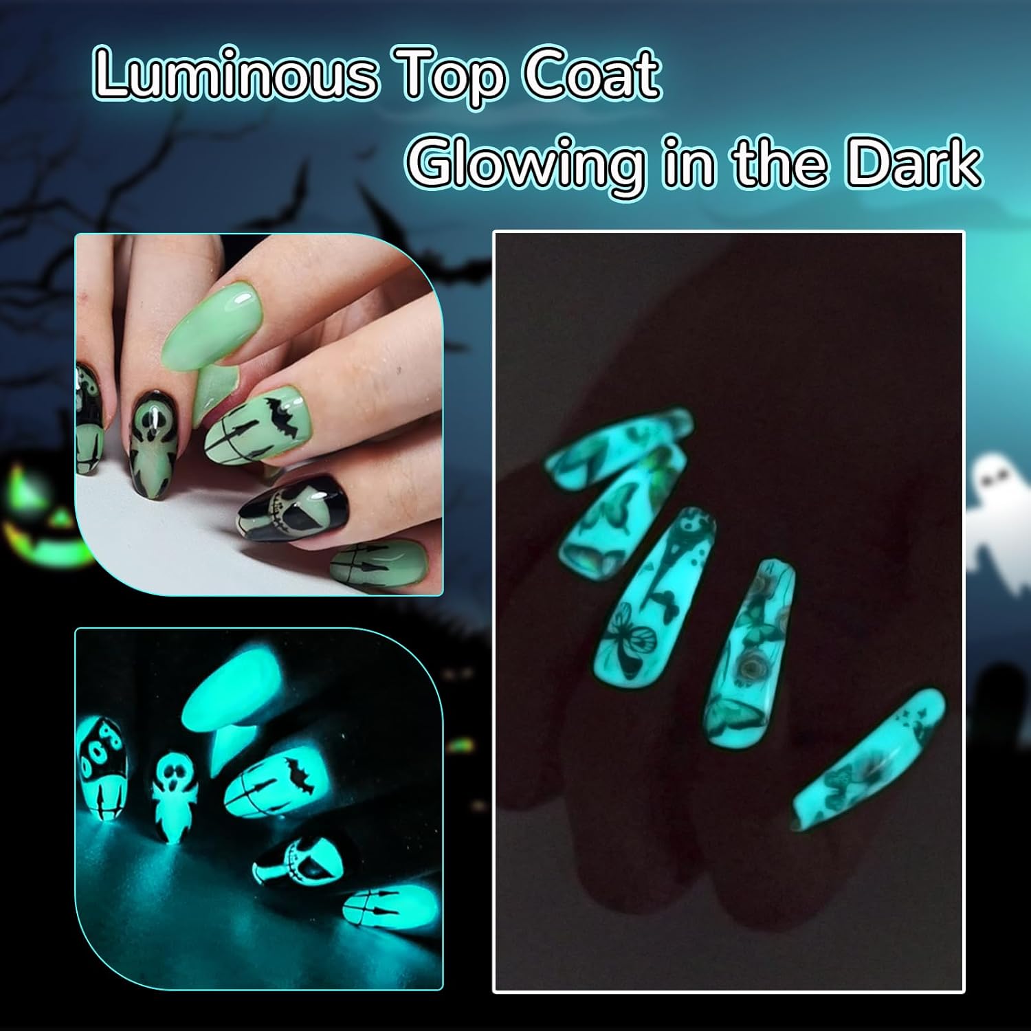 Glow In The Dark Gel Polish - Luminous Blue Nail Gel Top Coat, No Wipe Long-lasting, Transparent Glow, UV LED Needed, Perfect for Any Colors, Halloween