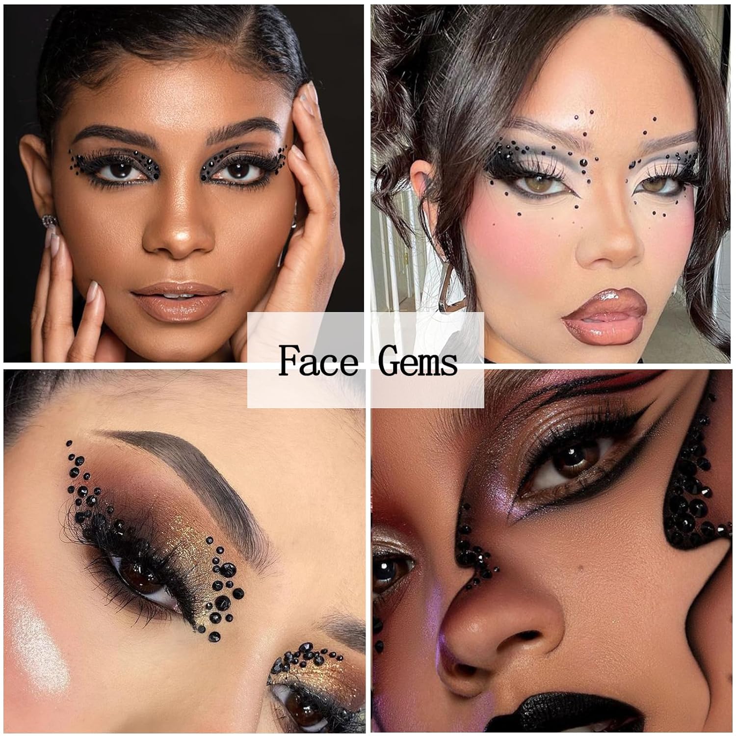 Nail Art Rhinestones with Glue Gel Flatback Nail Charms Luxurious Supplies Accessories Champagne Nails Gems Jewelry for Women Nails DIY Design Decoration,Black