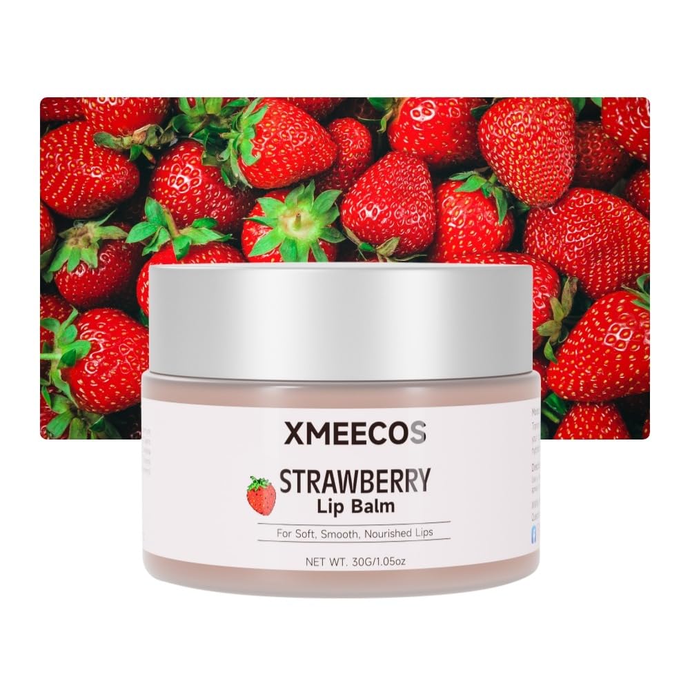 Beeswax lip balm with rose and jasmine, kiwi, strawberry, peach, cherry extract bee friendly 100% Natural for men and women, cruelty free moisturizing (30 Grams, Strawberry)