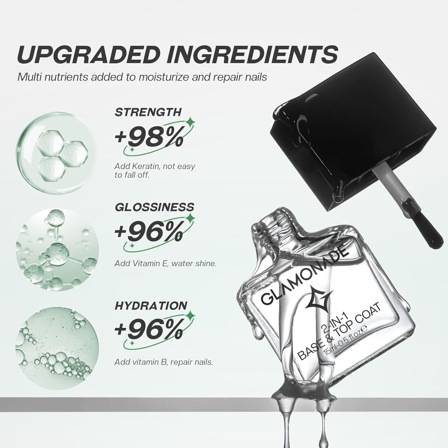 Base Top Coat Nail Polish: 2 in 1 Clear Quick Dry Nail Polish Color Protection Long Lasting Shine Polish Resists Smudging Chipping Fading Fast Air Dry Nail Coat for Women