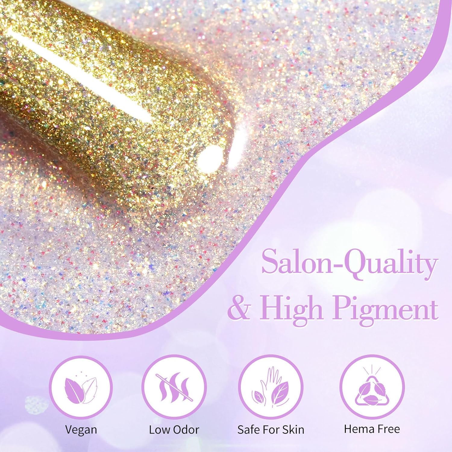 - Long-Lasting Durability: Designed for extended wear, this glitter gel polish is chip-resistant and maintains its vibrant shine for up to three weeks
