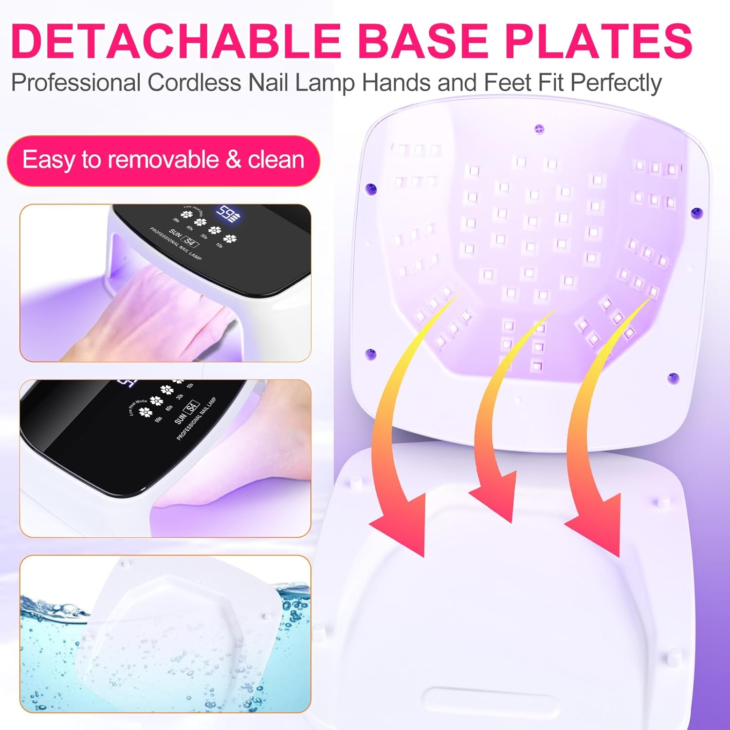 - Smart sensing: This cordless, rechargeable electric lamp is equipped with smart sensing, Hands/feet in, lamp on. Hands/feet out,lamp off, which is convenient for a person to DIY manicure at home, and it is also very energy-saving