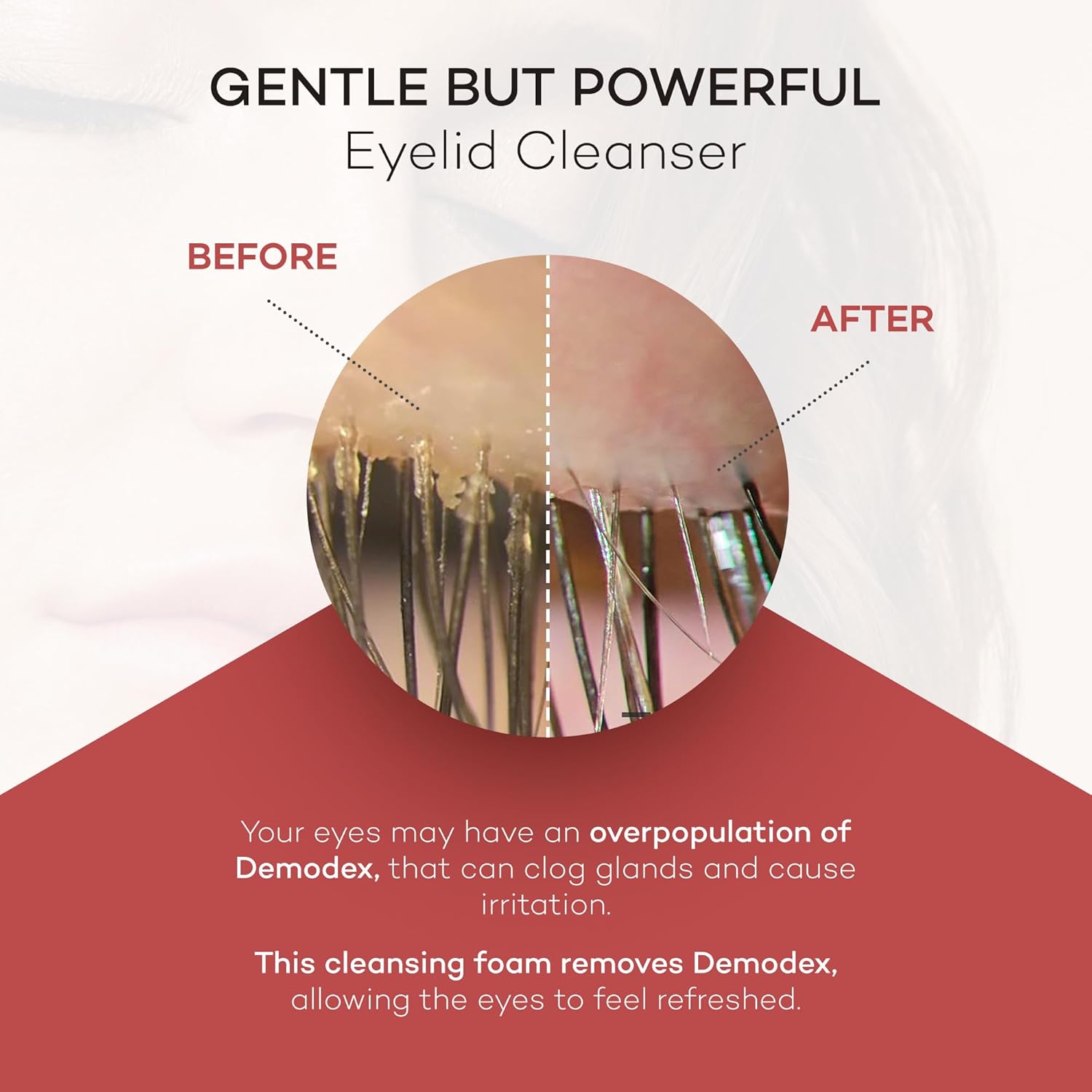 - A gentle but powerful eyelid cleanser leaves dry eyes feeling refreshed and energized. Your eyes may have an tartar-like biofilm residue that can clog glands and cause irritation. This foam removes eyelid residues, allowing the eyes to feel refreshed.