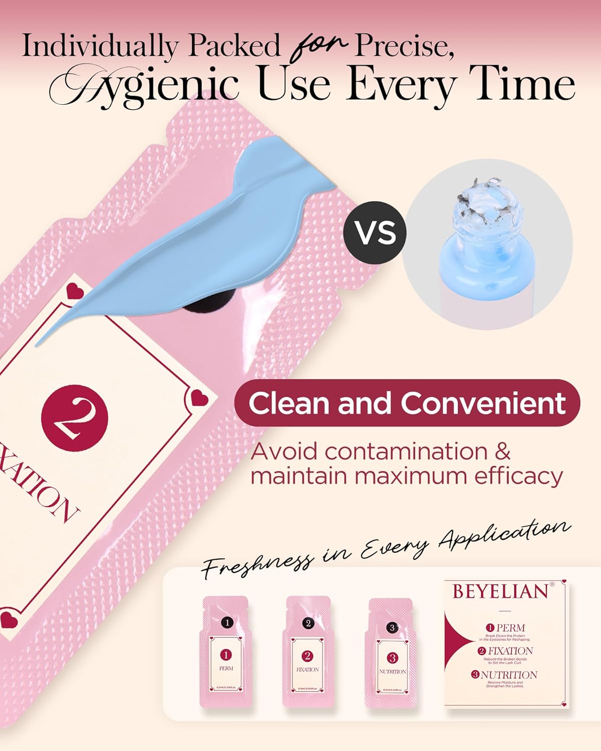 - Convenient, Hygienic, and Precise Sachets - Enjoy the convenience of pre-measured sachets, ensuring maximum hygiene and eliminating contamination risks. The controlled dosage helps avoid waste, making the eyelash lift process quick and easy while providing just the right amount of product for perfect results every time