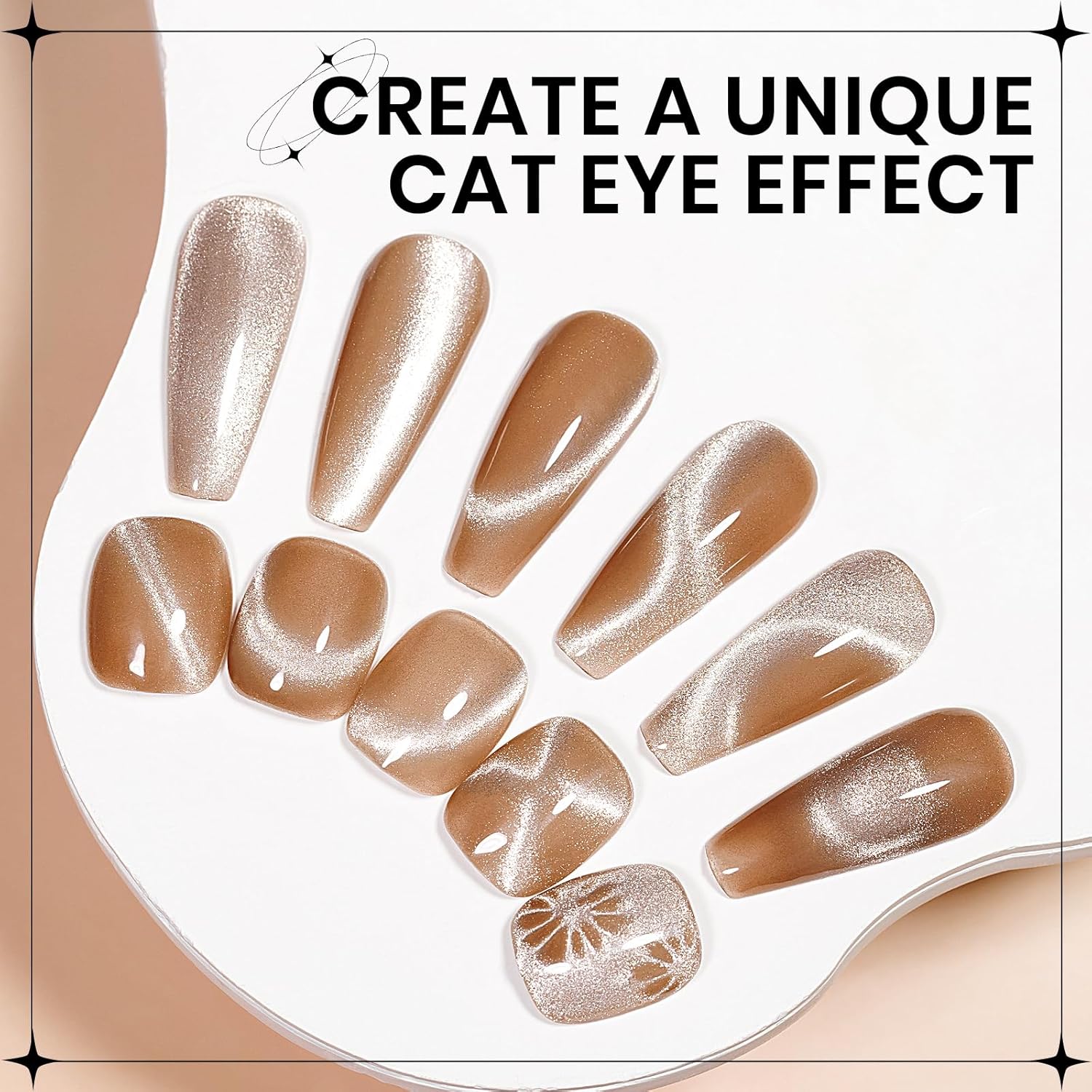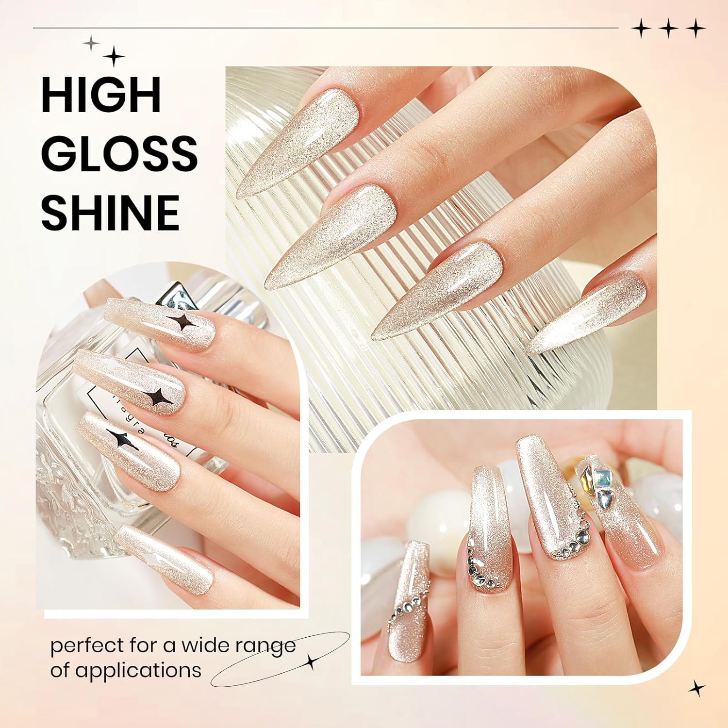 Cat Eye Gel Polish, Magnetic Holographic Glitter Gel Nail Polish Nude Shimmer Gel Polish with Magnet Soak Off U V Gel Salon DIY at Home, 0.5 OZ