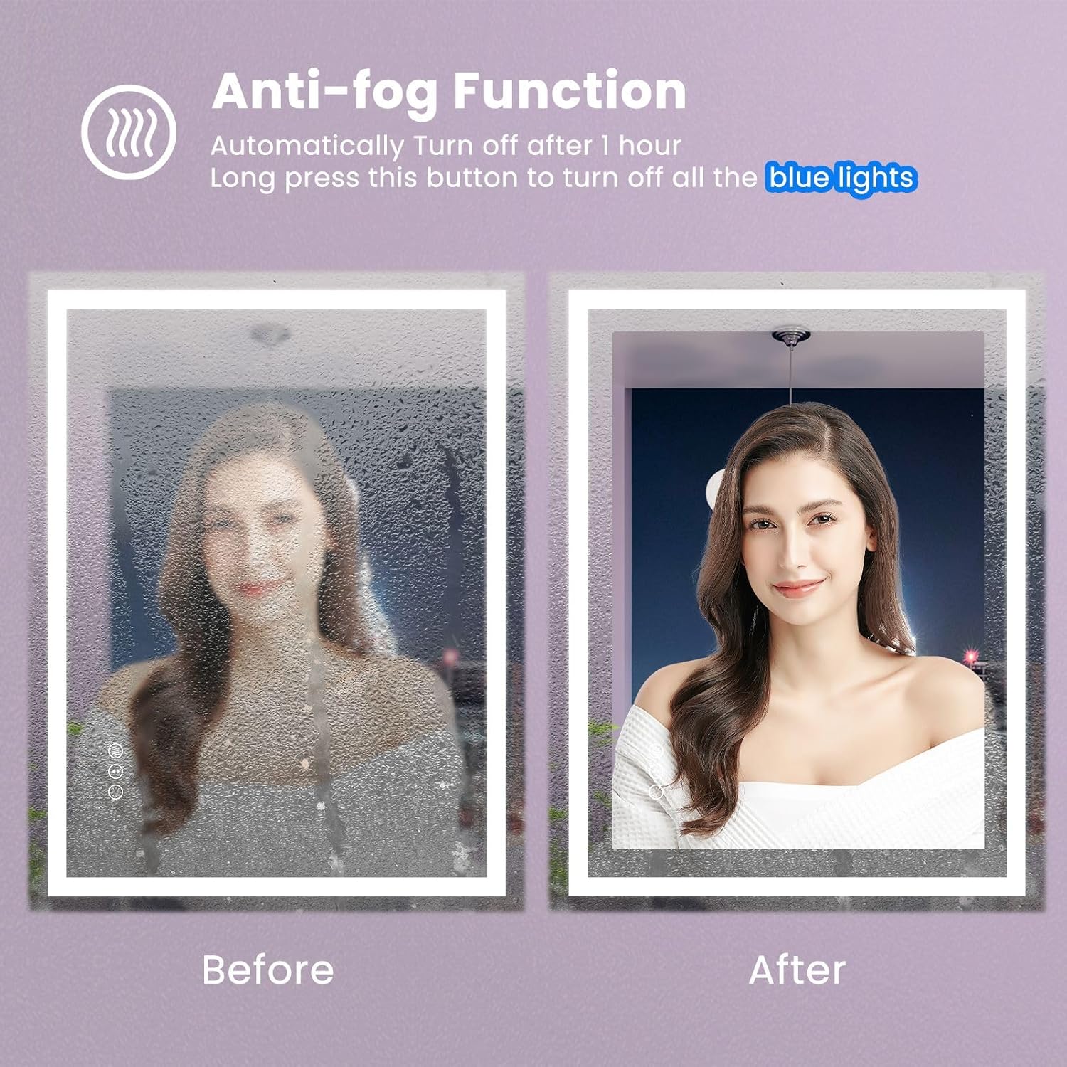 - [No more foggy mirrors! ] Amorho mirror supports fog removal function, which can quickly clear the fog of the mirror surface in 1 minute. And shut off automatically after one hour