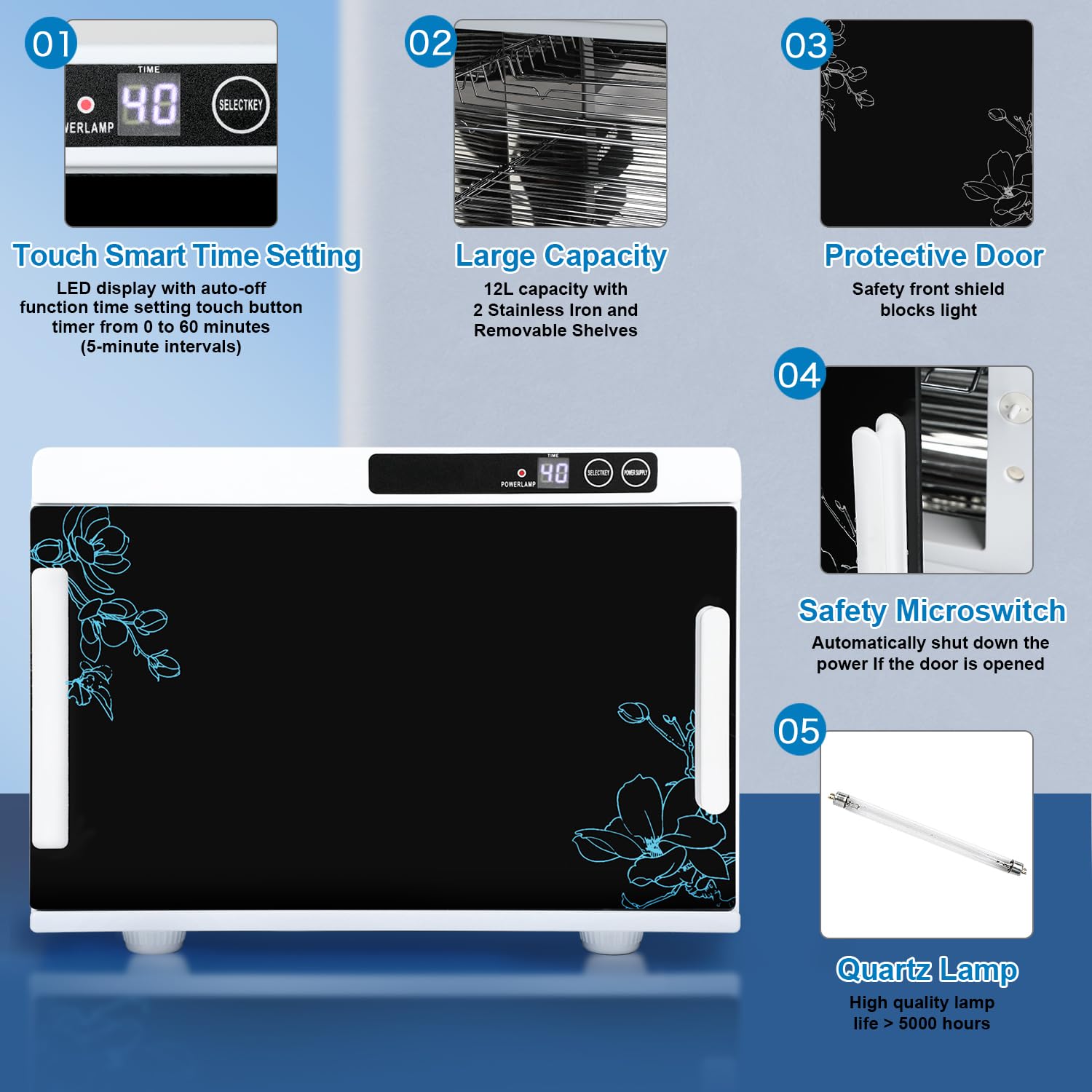 - β ππππππ² ππ§π ππ§πππ₯π₯π’π ππ§π: The cleaner cabient uses light, not generate heat. In order to keep dangerous rays within and prevent unintentional exposure, the light cabinet has an insulated door and an auto shut-off system. Thickened coated glass door blocks most of the light, avoiding direct exposure to your eyes. Smart security switch sensing, the light will auto-off when the door open. Energy-efficient lamp of only 6W ensures low energy consumption for saving on your electric bill.
