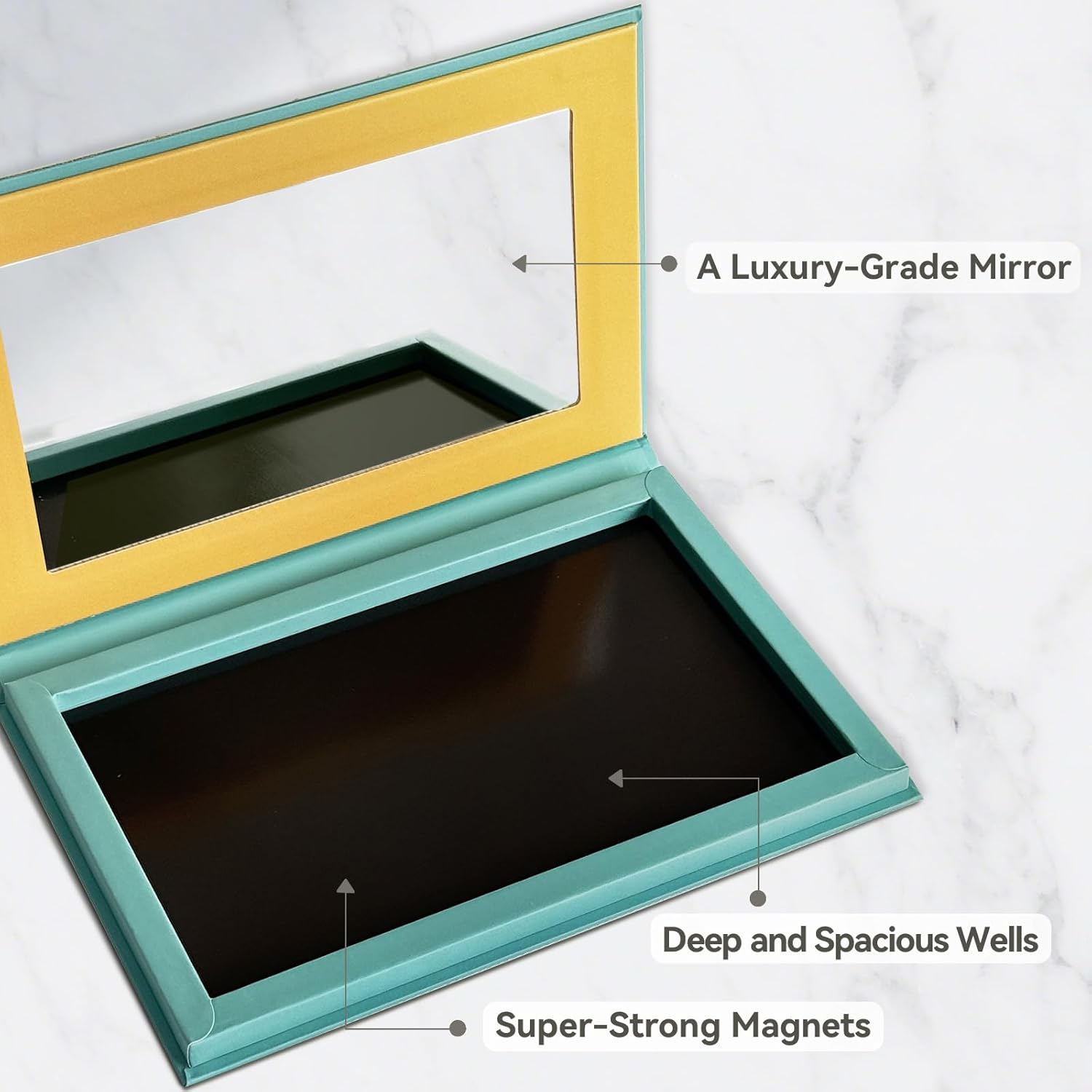 - Travel-Friendly DIY Empty Makeup Palette: This palette is made of premium paper materials and the unit carton paper is made from recycled coffee grounds. The strong magnetic on the bottom holds the pans very tight to protect the products safely. The embedded mirror is your ideal companion when you wear the makeup. You can easily organize and customize your beloved eyeshadow pans, blush pans and contour cream pans in one palette, that will lighten your travel load.