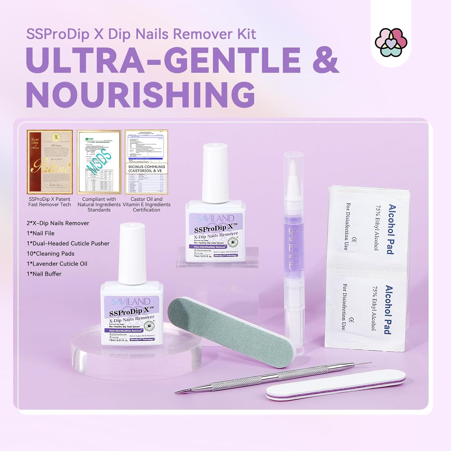 - Easy Dip Removal Solution: Professional kit contains 2x15ml plant-based dip powder remover, cuticle oil pen, dual-ended pusher, nail file, and cleaning pads. Designed for dip powder removal without soaking or harsh scraping, protecting natural nails and cuticles