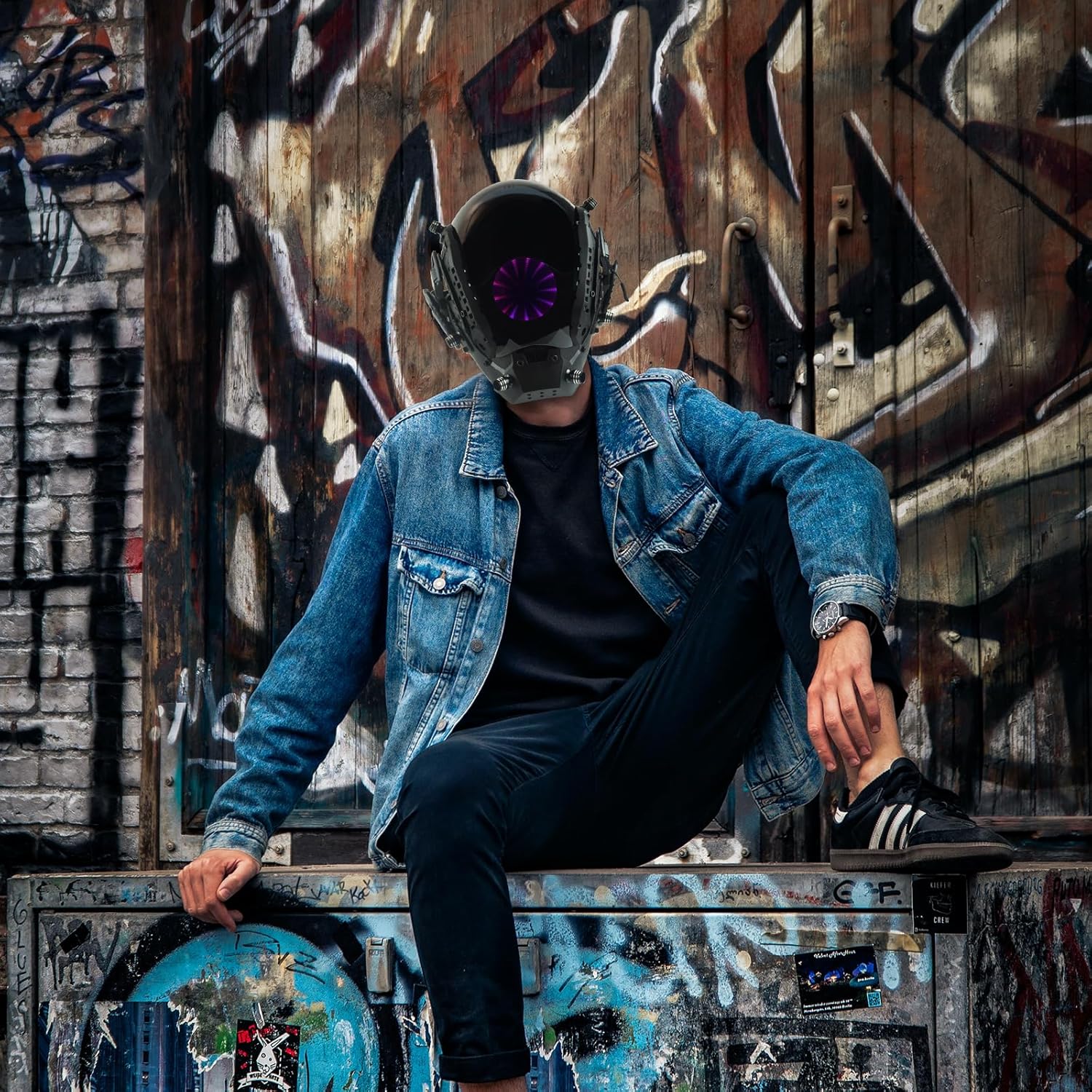 Punk LED Mask, Eye of the Abyss Design, Futuristic Mask Helmet, Perfect for Halloween Party, Cosplay