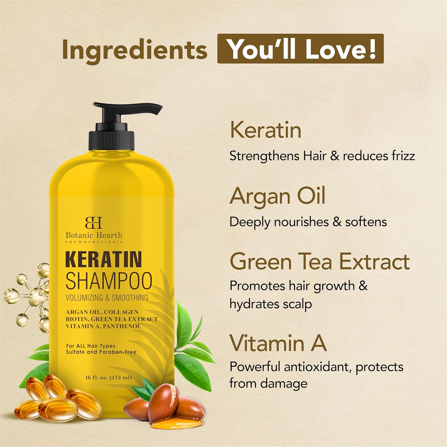 Botanic Hearth Keratin Shampoo | With Argan Oil, Collagen & Biotin | Best For Dry Damaged, Fizzy & Color Treated Hair | Hair Thickening & Sulfate Free | 16 Fl Oz (Pack Of 1)