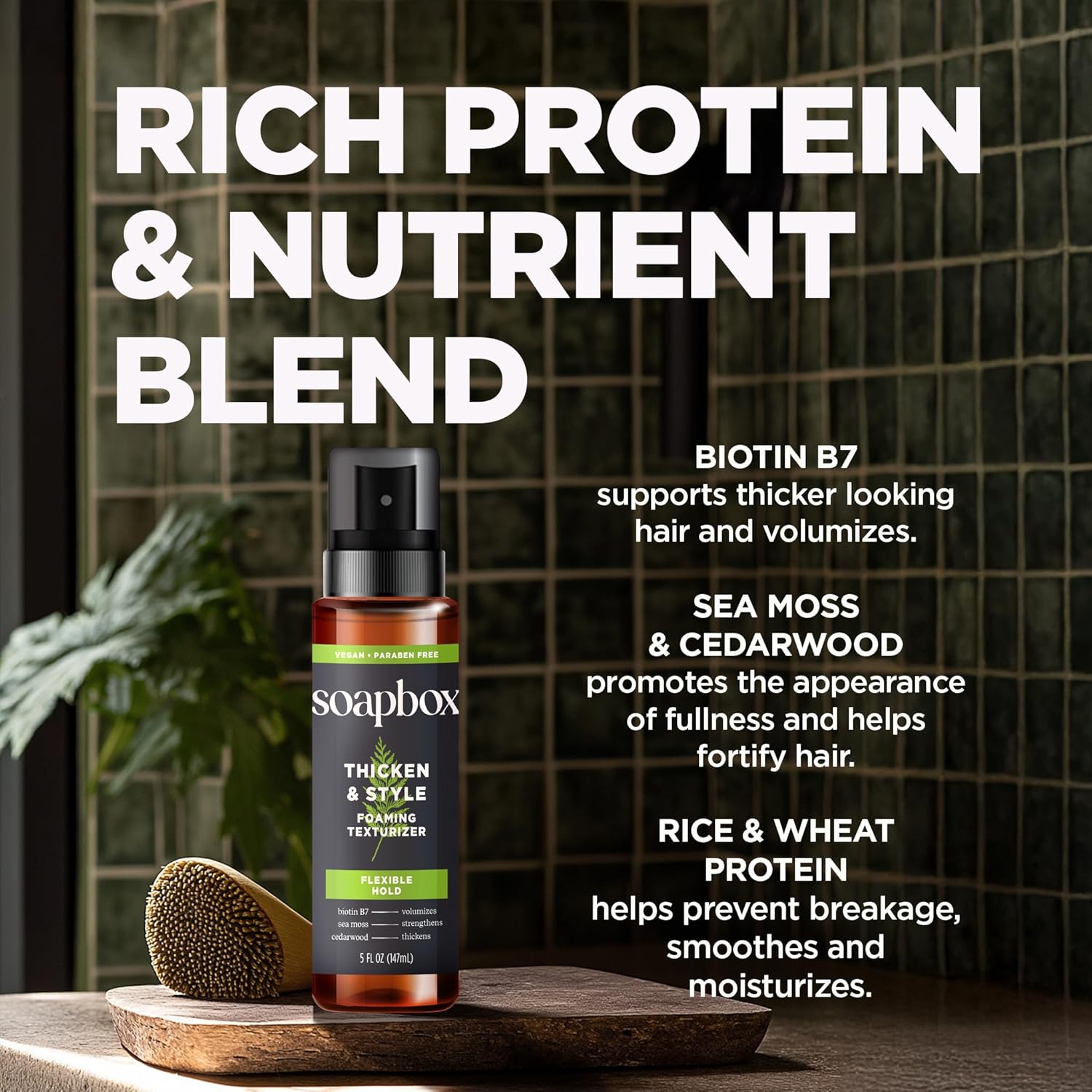 Soapbox Men's Thicken & Style Foaming Texturizer, Men's Hair Styling Foam, Hair Care for Men, 5oz