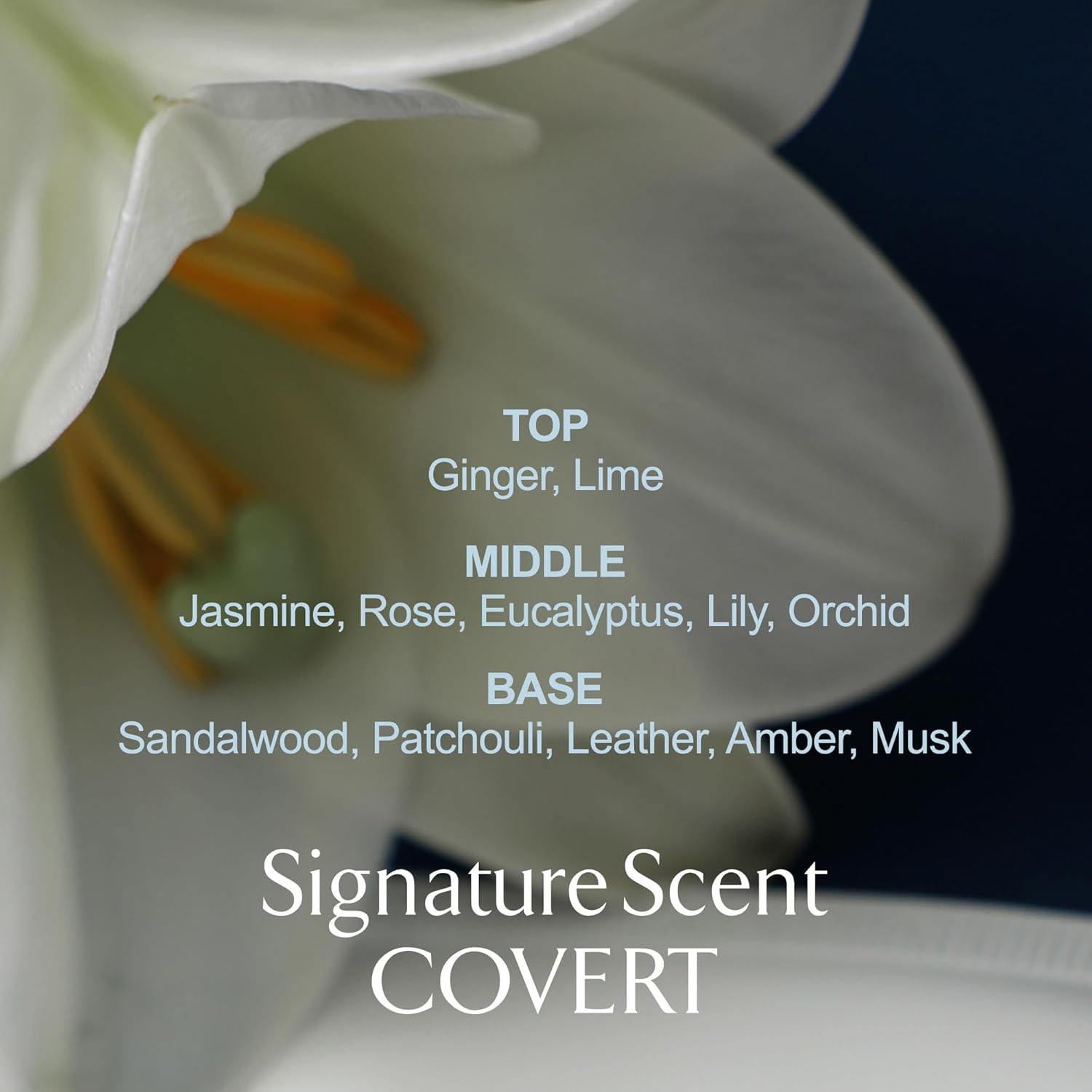 - 1.๐ณ COVERT SCENT_DEEP WOODY AMBER: A deep floral musk with intense woody amber notes. The spicy vibrancy of ginger and lime adds a fresh edge, balanced by lush floral notes, musk, and amber for a sensual and longlasting impression.