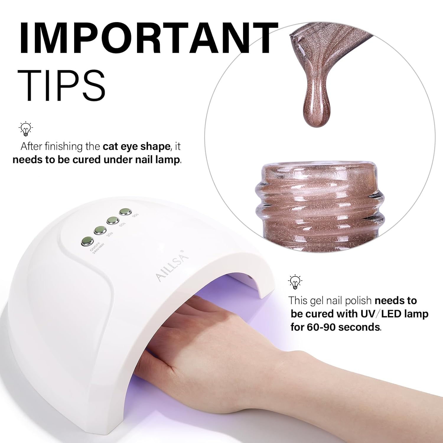 - Crystal Sparkle Effect: AILLSA cat eye gel polish creates mirror-like sparkle, crystal-clear nails, or vibrant cat-eye effects. Use it alone or pair it with any base color for stunning crystal glass nail designs featuring translucent tones and a dazzling finish.