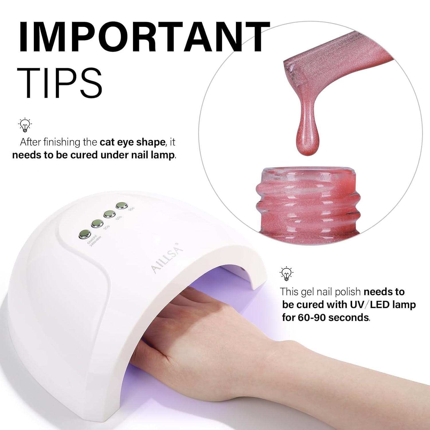 - Crystal Sparkle Effect: AILLSA cat eye gel polish creates mirror-like sparkle, crystal-clear nails, or vibrant cat-eye effects. Use it alone or pair it with any base color for stunning crystal glass nail designs featuring translucent tones and a dazzling finish.