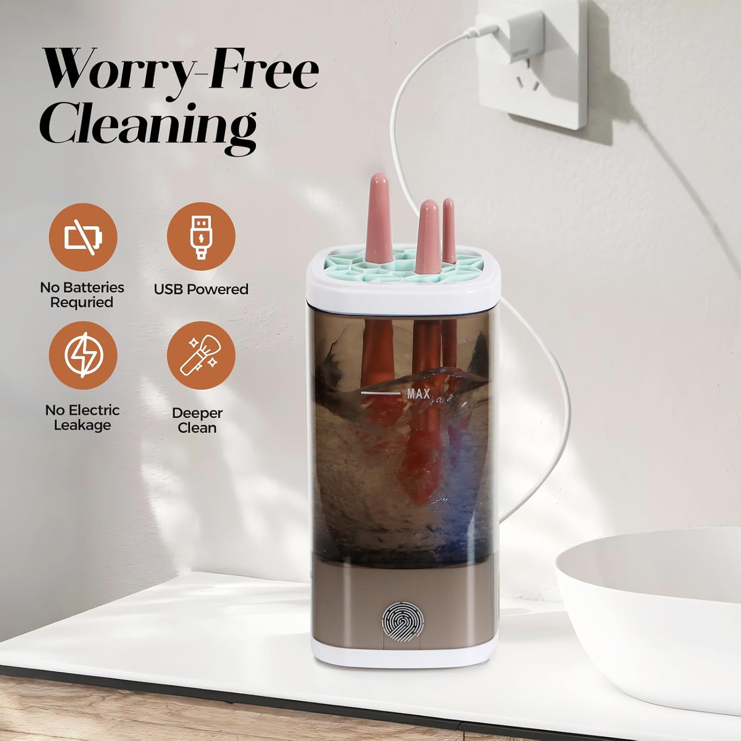 Electric Makeup Brush Cleaner and Dryer – Fast, Automatic Deep Cleaning Machine for All Brush Sizes, USB Rechargeable, Portable for Home & Travel