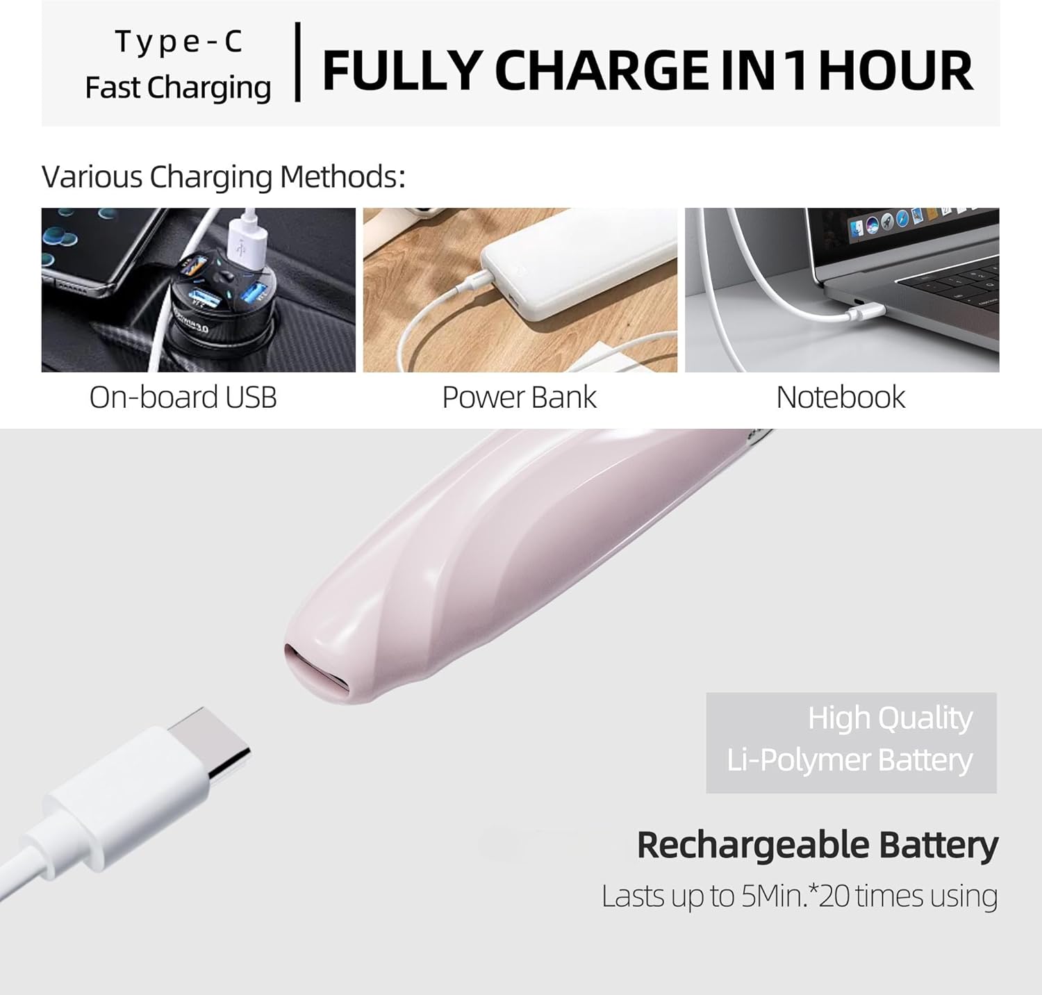 - 【Compact and Portable 】This electric heated lash curlers with exquisite and elegant design, just like a dancing girl. Fits naturally in your hand, and also fits neatly into your makeup case, gym bag. Our electric lash curler is made of Alloy heating core, only 10s pre-heating, achieve 24Hrs Long Lasting Curled Lash. Type-C Fast Charging, supports various charging methods such as,On-board USB,Power Bank. Perfect to take it to anywhere you need and curl your eyelashes as you need.