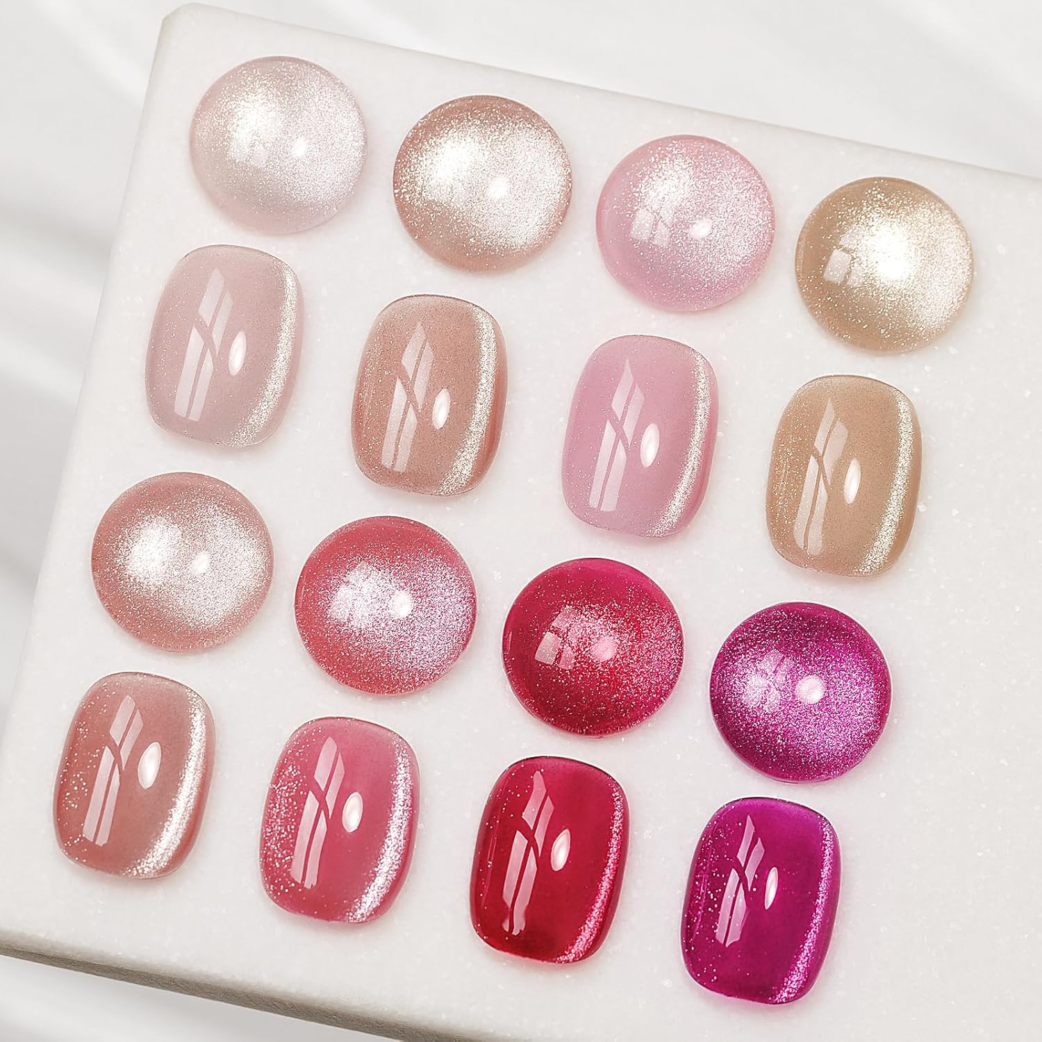 - Stardust Cat Eye Effect & Ideal Gift Choice: Crystal pink colors with cat eye effect, brings you a brilliant glossy finish, to feel the starlight swaying under different angles. Wherein, the pink series is a symbol of elegance. The package is ready to gift, which is appropriate for families or friends on festivals such as birthdays, Mother's Day, Valentineโs Day, Christmas, etc.
