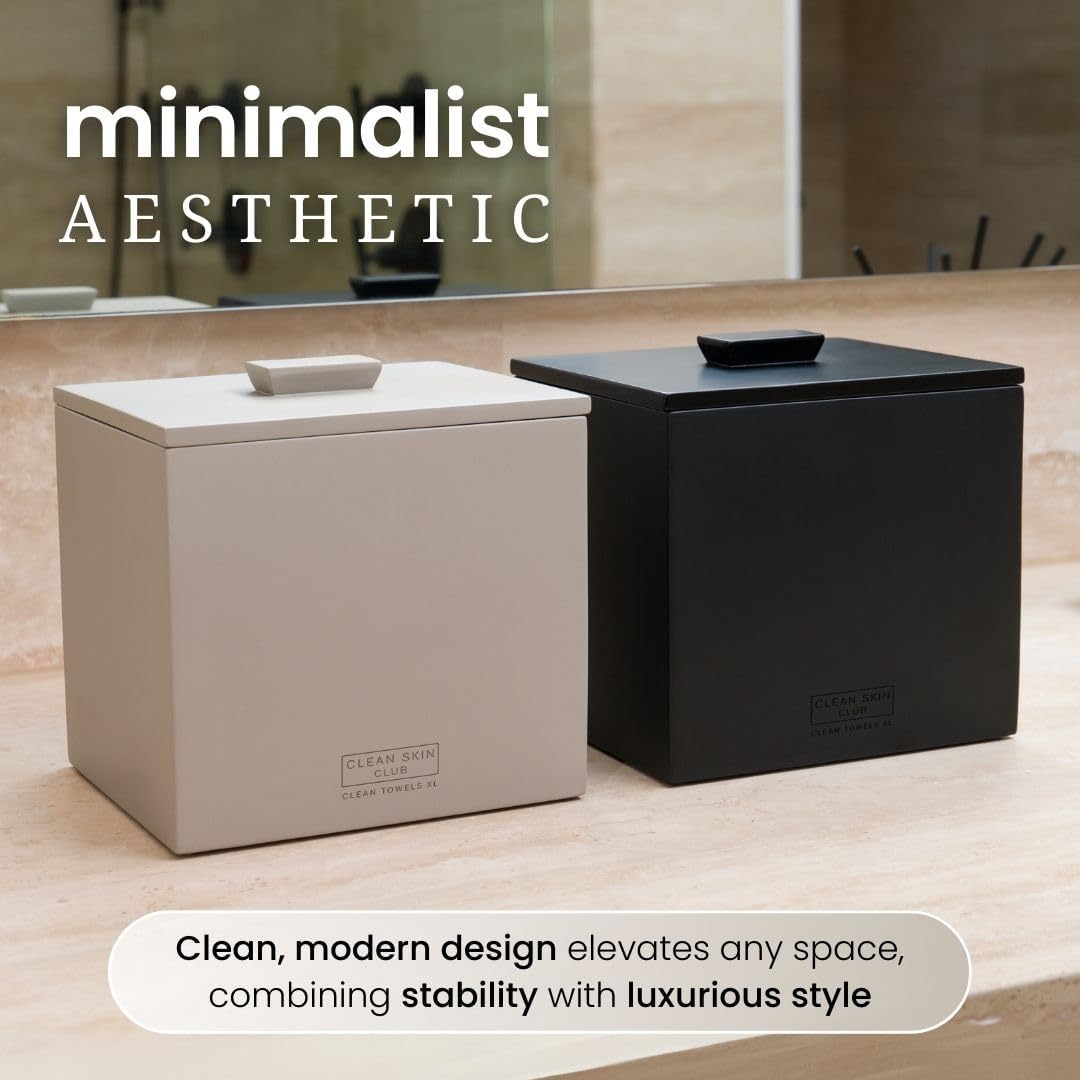 CLEAN SKIN CLUB Cement Box for 50 Disposable Clean Towels XL (Towels NOT Included), Concrete Container for Face Towelettes Bathroom Counter Storage, Cleansing Facial Dry Wipes - Taupe Stone