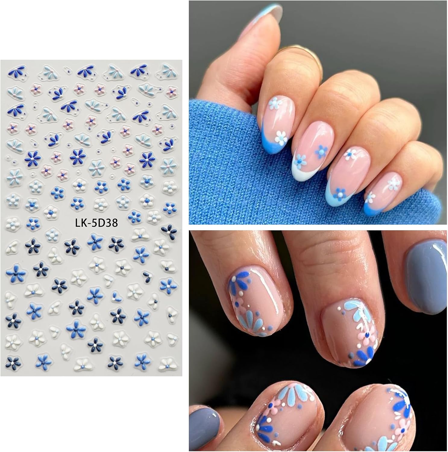 - 【Package Contain】You will get 5 sheets flower nail stickers & 1 nail tweezers,large number of different patterns for you to use and replace in daily life.