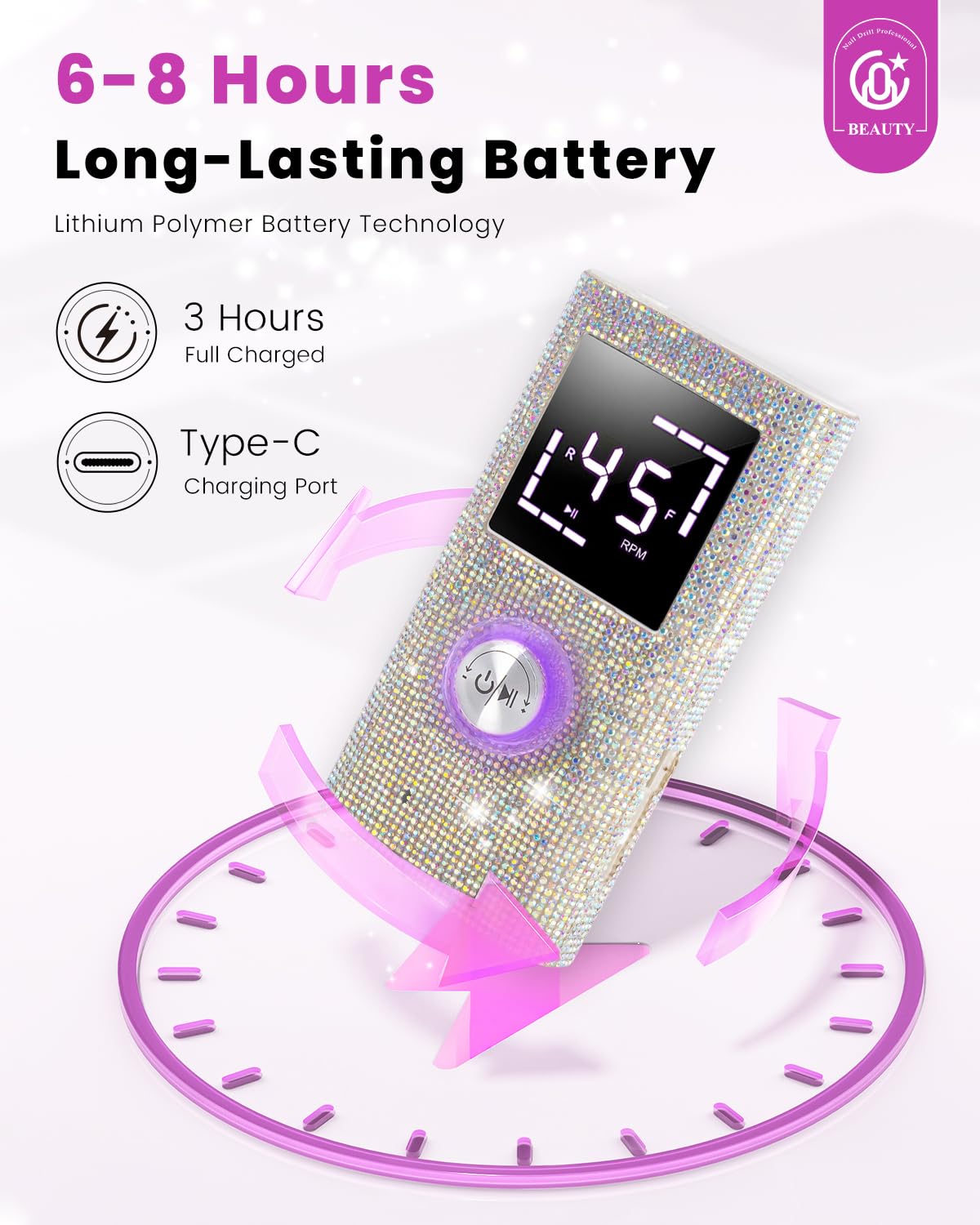 CozyZen Cordless Electric Nail Drill, 45000 RPM Rechargeable Diamond E-File, Portable & Low Noise for Acrylic/Gel Nails, Manicure & Pedicure - Professional & Home Use