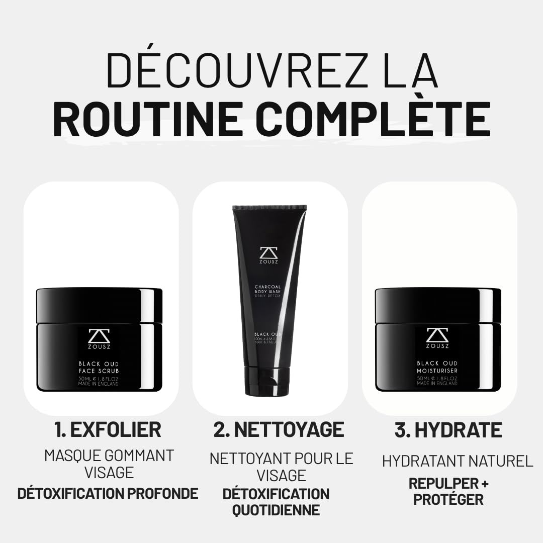 - LUXURIOUS BLACK OUD SCENT. Infused with a sophisticated aroma, this charcoal scrub enhances your grooming experience.