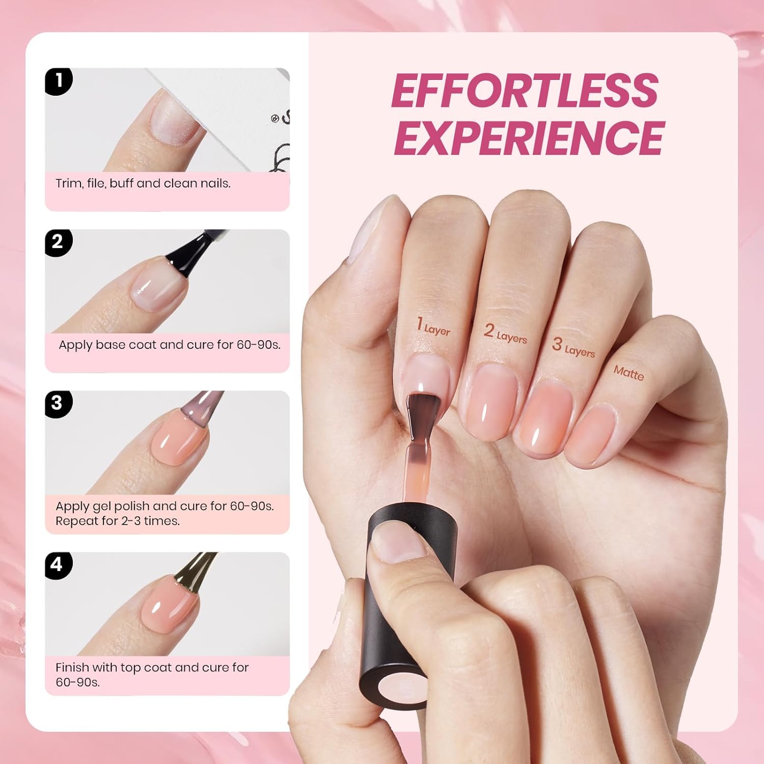 - ă28 Days Long LastingăBeetles sheer jelly gel polish set lasts for 28+ days with high gloss shine under proper application. Strong, long-lasting, and flexible with excellent adhesion and flawless results without the need for professional help. Beetles always carefully selects the most matching color collection to help you easily find your favorite colors and confidently show fashionable outfits.
