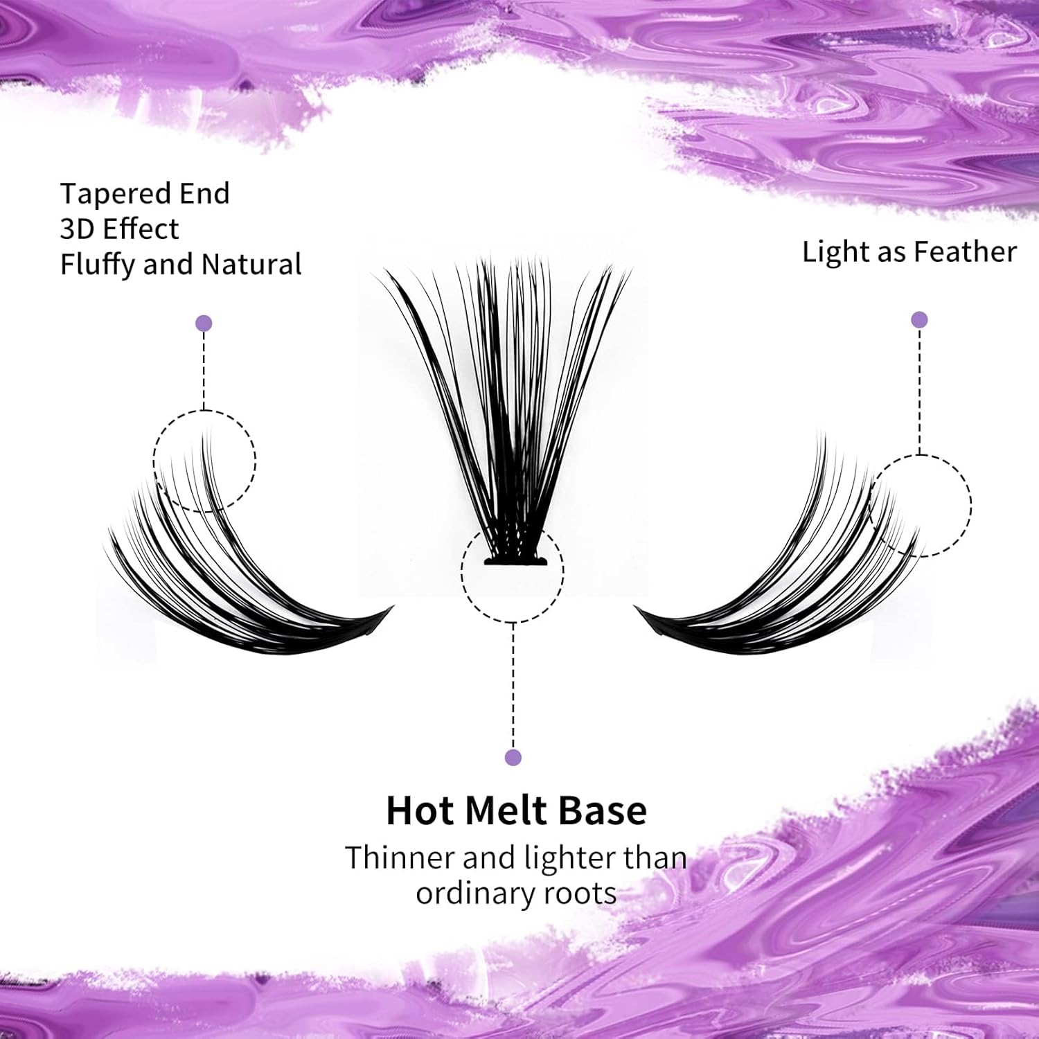 - Soft and Lightweight: The lash extension cluster is made of high-quality basf fiber, which is high-quality, soft, lightweight, matte and non irritating eyelash clusters, realistic look and long-lasting to wear.