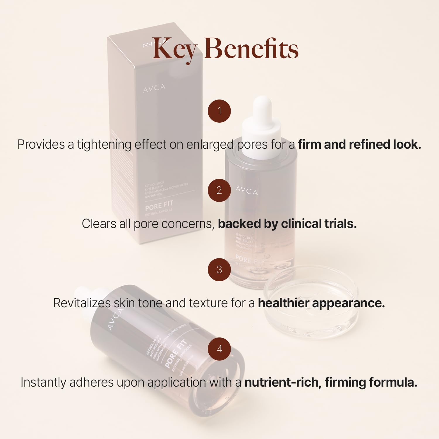 - [Powerful Ingredients for Targeted Pore Care] A revitalizing drop for, sagging pores. Formulated with four botanical extracts, pure vitamin A (retinol), and rose water in an optimal blend for intensive pore care.