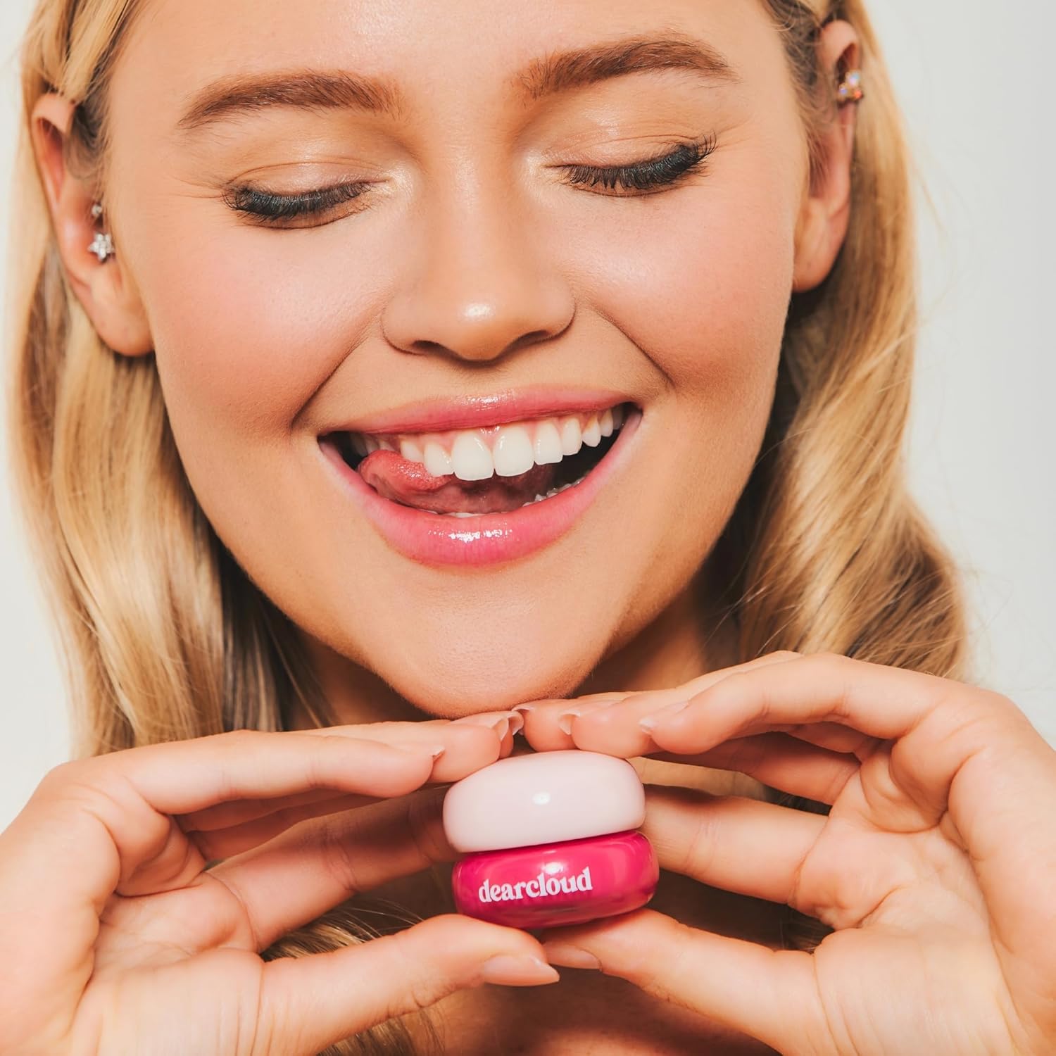 dearcloud Dewy Lip Jam – Hydrating Lip Balm & Gloss with Vitamin E, Korean Skincare (Pink Lychee)