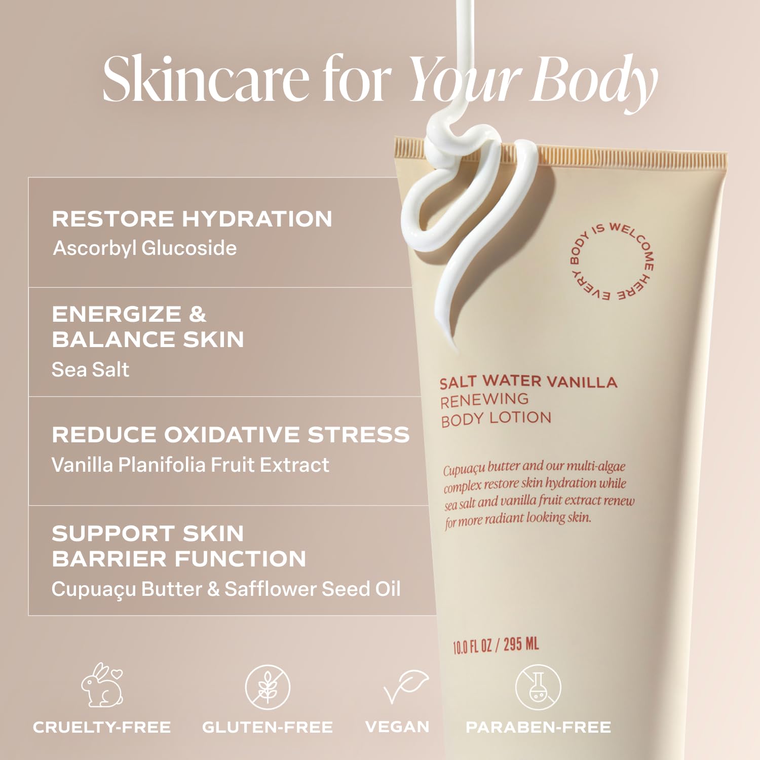 - GOOD FOR SKIN: This body lotion comes in a 2x 10oz pack for convenience. All our products are cruelty-free, gluten-free, vegan, and paraben-free and everything we create is made with a body-positive vibe. Saltair - Body Care is Skin Care. Every Body is Welcome Here