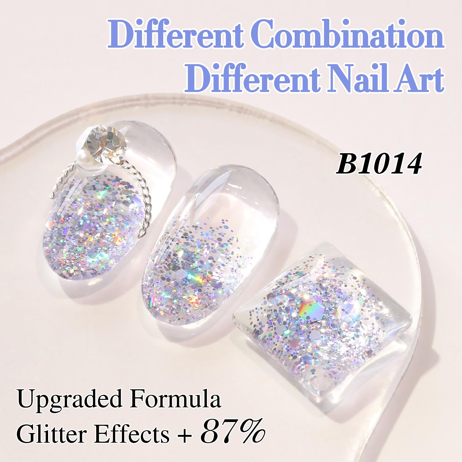 Double Rhythm 0.5Oz Glitter Gel Polish Shimmer Reflective Color for Nail Art Salon DIY Soak Off 15ml Nail Lamp Gel Polish at Home (Pastel Blue-B1014)