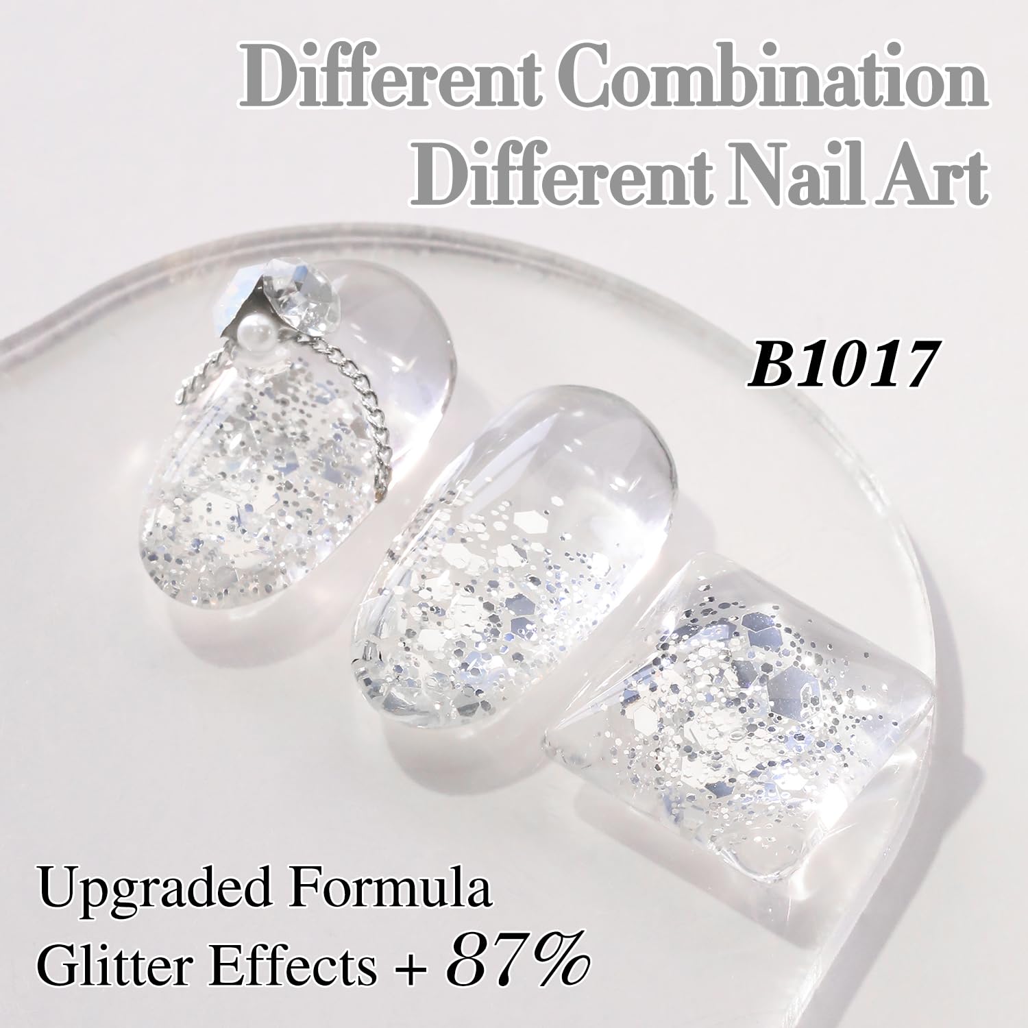 Double Rhythm 0.5Oz Glitter Gel Polish Shimmer Reflective Color for Nail Art Salon DIY Soak Off 15ml Nail Lamp Gel Polish at Home (Silver Sequin-B1017)