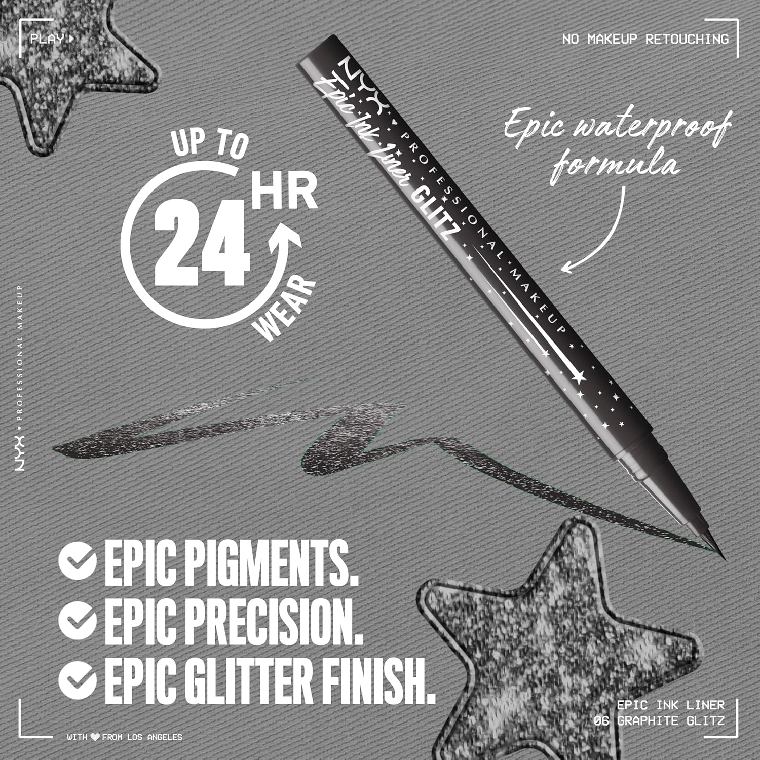 NYX PROFESSIONAL MAKEUP Epic Ink Glitz Liner, Waterproof Metallic Liquid Eyeliner with Vegan Formula - Graphite Glitz (Shimmer Graphite Black)