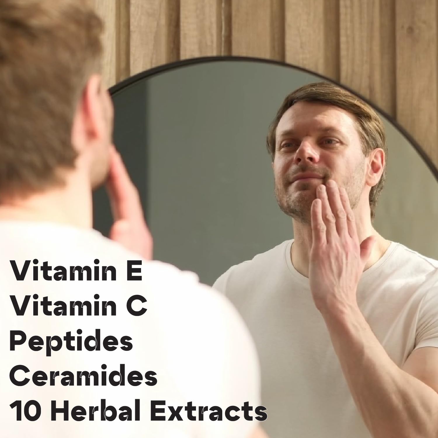 - Evidence-Based Topical Just for Guys: This face moisturizer for men is comprised of 10 Herbal Extracts, along with Ceramides, Vitamins E and C, Squalane, Panthenol, Adenosine, and other powerful anti-aging compounds specifically formulated for men's thicker skin