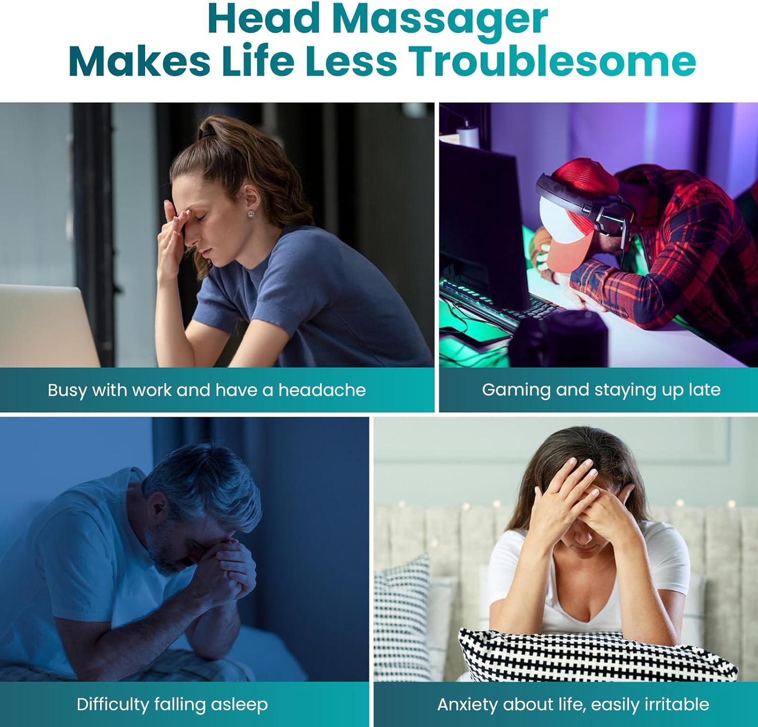 - 【Simulates Hand Massage for Deep Relief from Headaches and Fatigue】Using 16D technology with 96 vibration points, it mimics hand movements like kneading, pressing, and massaging to target key pressure points on your head. It also has a 6-zone airbag system that adjusts air pressure to boost circulation, helping to relieve headaches, eye strain, insomnia, and more—giving you a deeply relaxing experience.