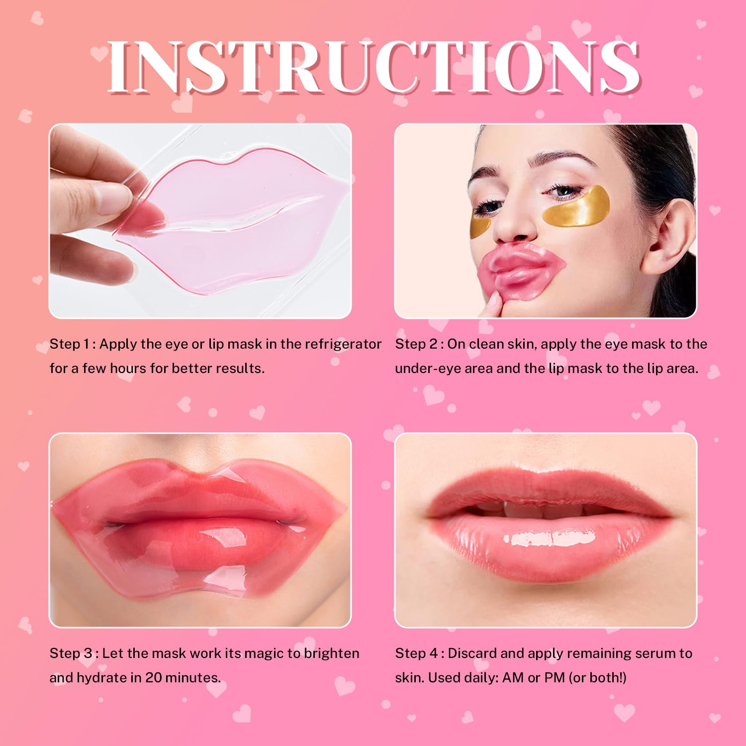 - 【Dual Hydration for Eyes & Lips】 This combo set includes hydrating under eye patches and lip masks, designed to deeply moisturize and rejuvenate the delicate skin around your eyes and lips, leaving them smooth and refreshed.
