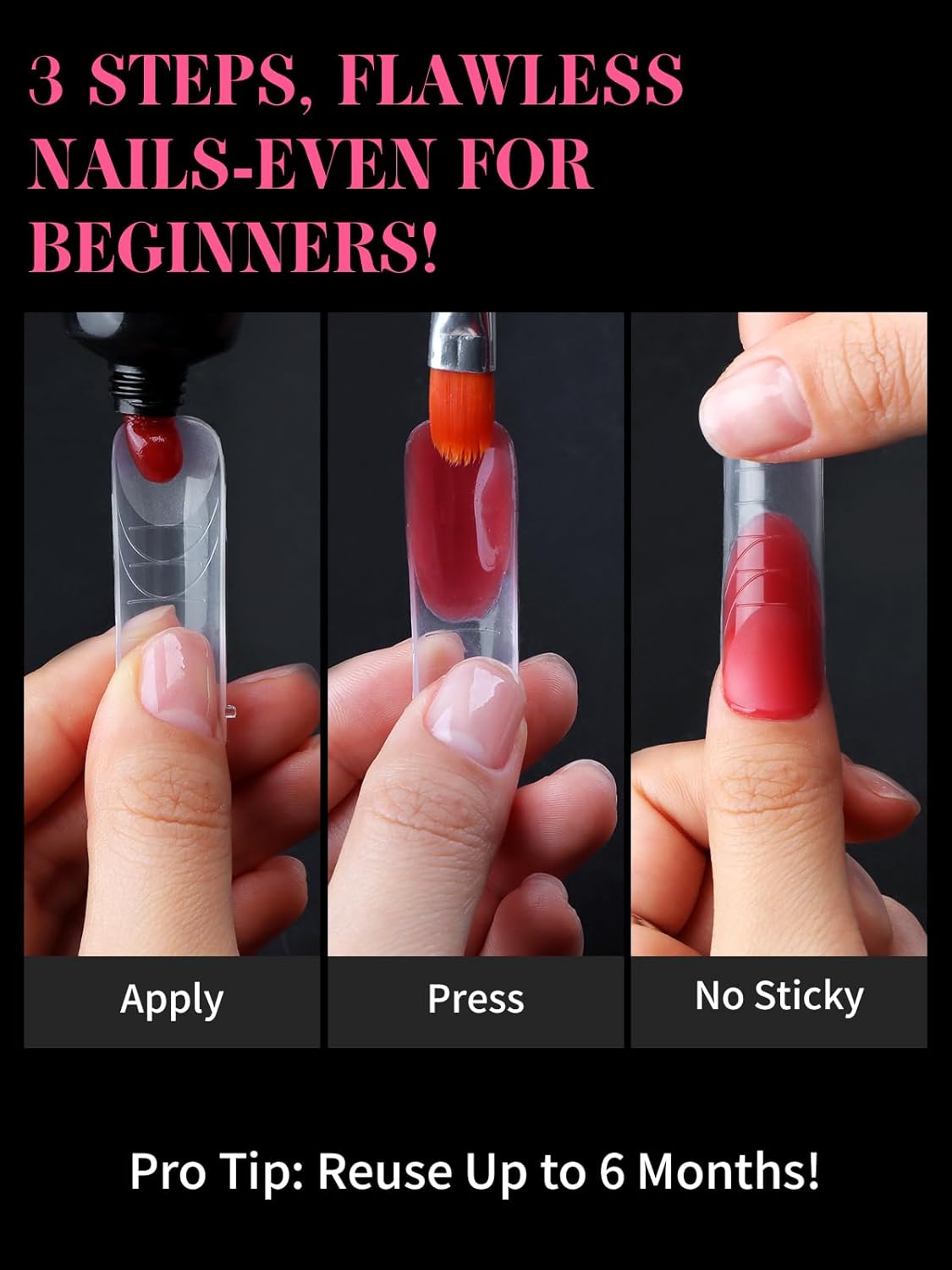 - 【Sturdy Gel Nail Mold】Reusable nail forms are made with high quality material, which is strong, tough, and reusable, providing you with a wonderful nail art experience that lasts.This artificial nails forms protective sleeve has a small handle on both sides, which is convenient for constructing gel nail extension nails, and will not stick to your hands, and can be easily removed after application.