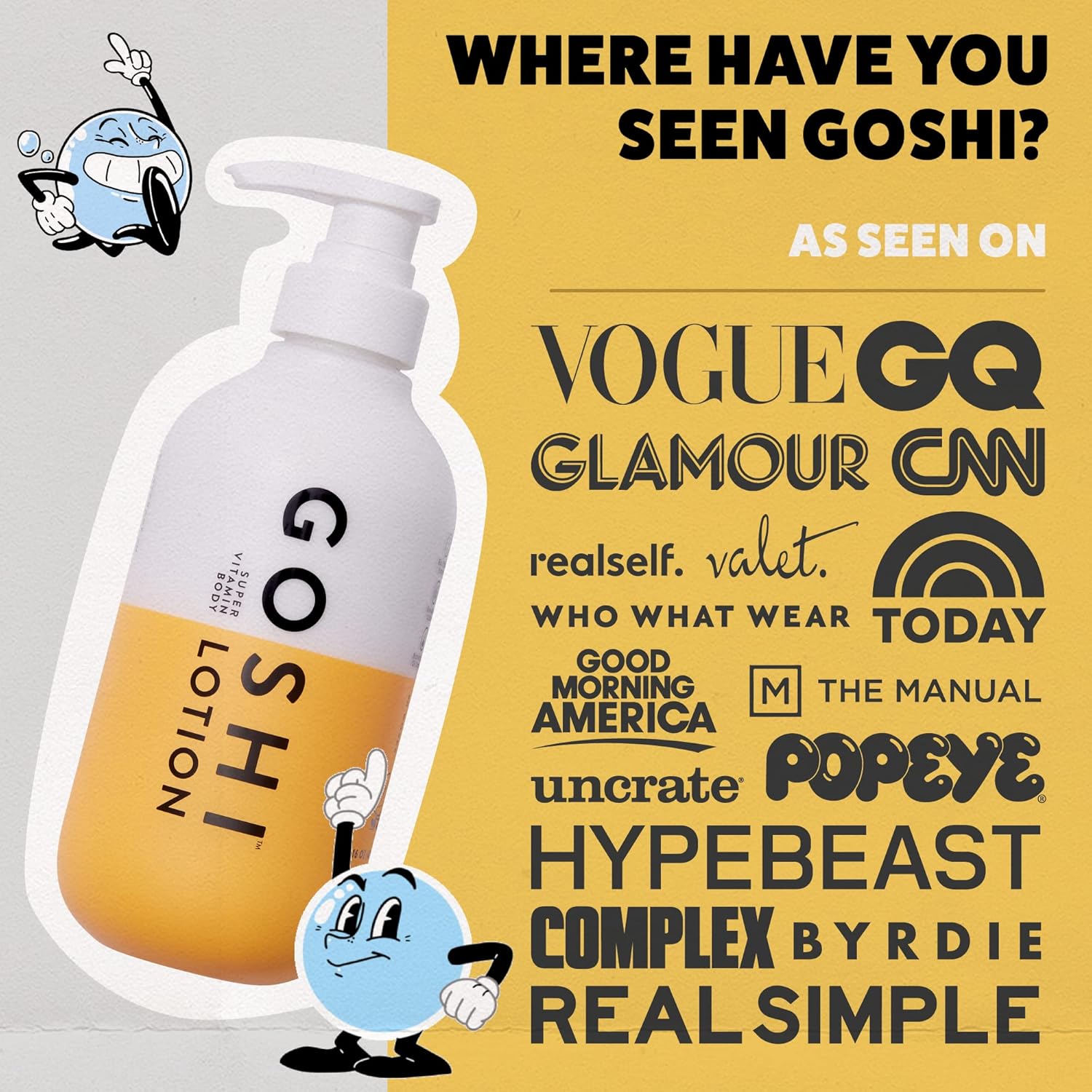 - For All Skin Types: Many compounds found in body skin care products strip away the skin’s natural protective layer, forcing the production of little or too much oil to rebuild it. The GOSHI super vitamin body lotion supplements the natural environment of our skin to support the reproduction of nourishing enzymes and microorganisms, addressing the greatest underlying cause of dry and oily skin.