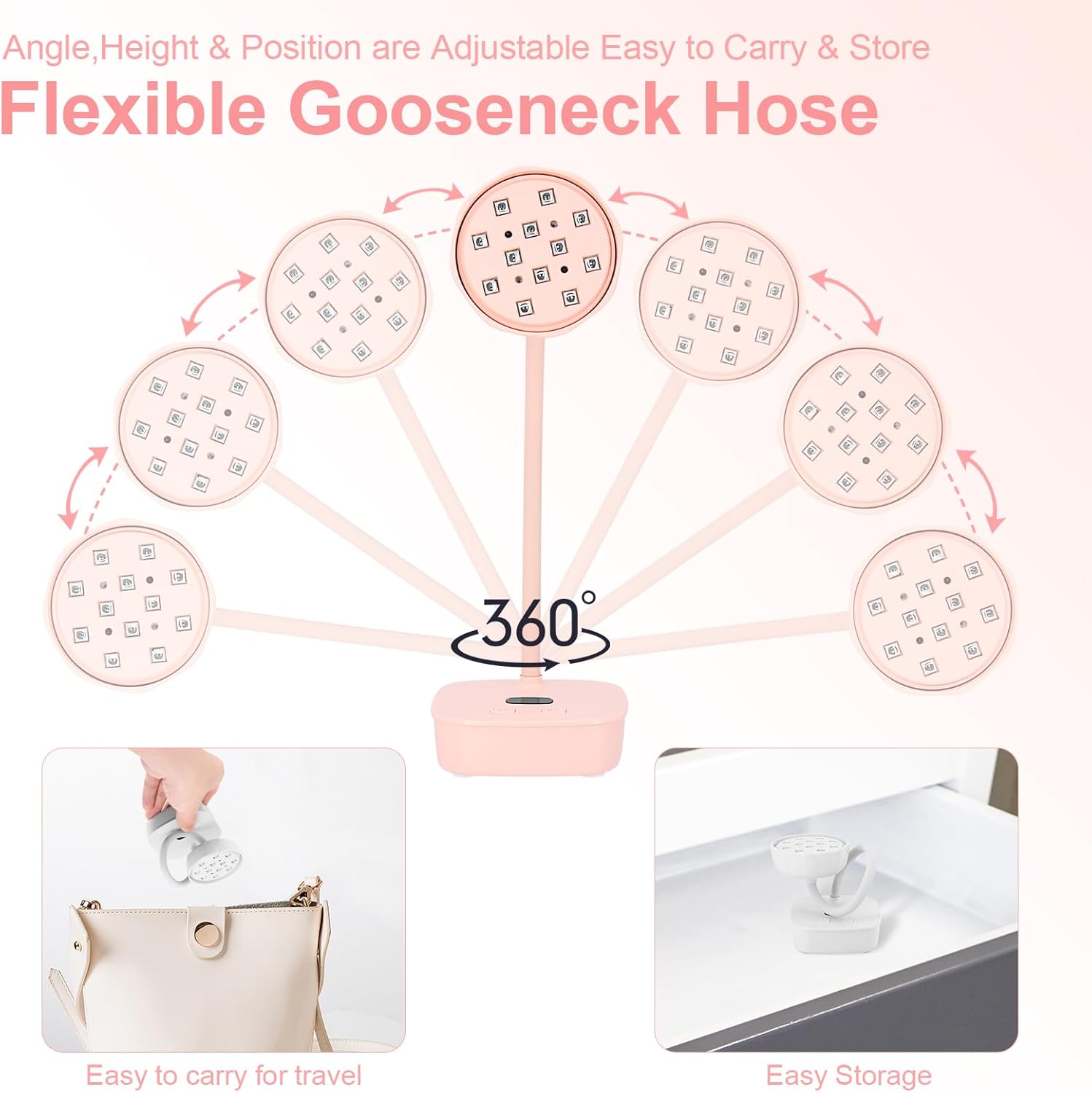 - Flexible Gooseneck:UV nail lamp features 360ยฐadjustable and bendable gooseneck,which can flexibly adjust the height and direction of the UV lamp,stabilize various shapes,and let the light focus exactly where you need it without side light.