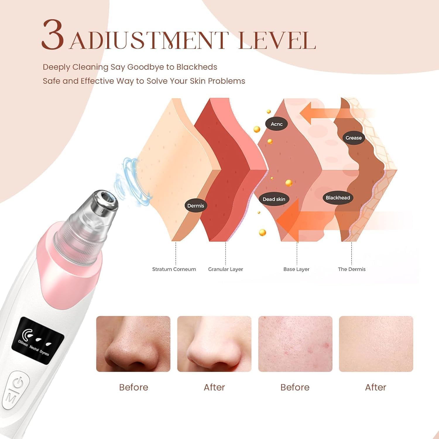 2025 Blackhead Remover Pore Vacuum,Facial Pore Cleaner-5 Suction Power,5 Probes,USB Rechargeable Blackhead Vacuum Kit Electric Acne Extractor Tool for Adult